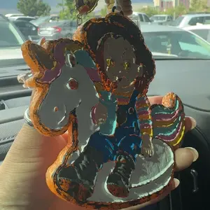 Very disappointed not at all what I expected. Only the front side of it is painted so if u hang it from your mirror you just see a black blob on the other side and the scent has only lasted a few days