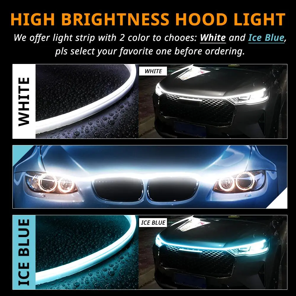 ·High-Quality Material: The hood light strip is made of silicone, non-heating elastic material. It can be bent at your will and has a long lifespan. Soft and safe.