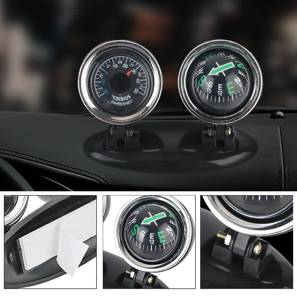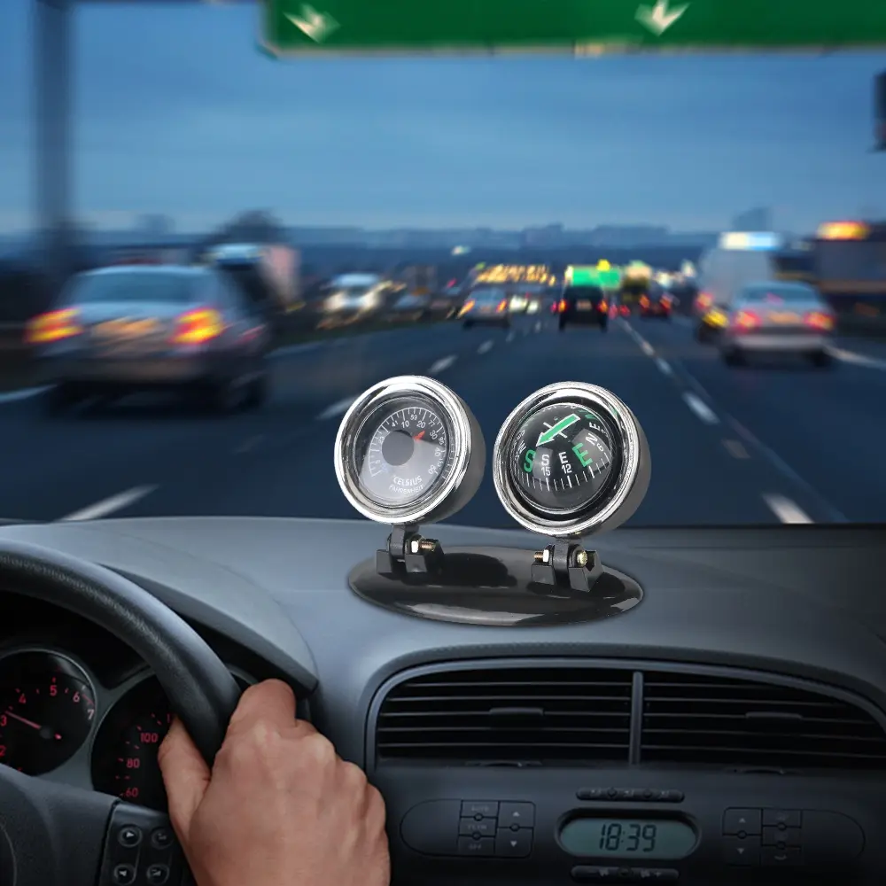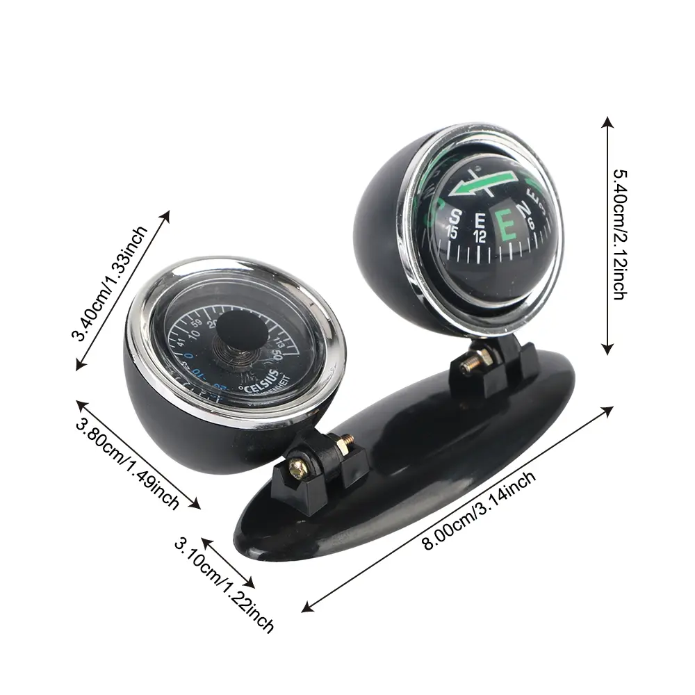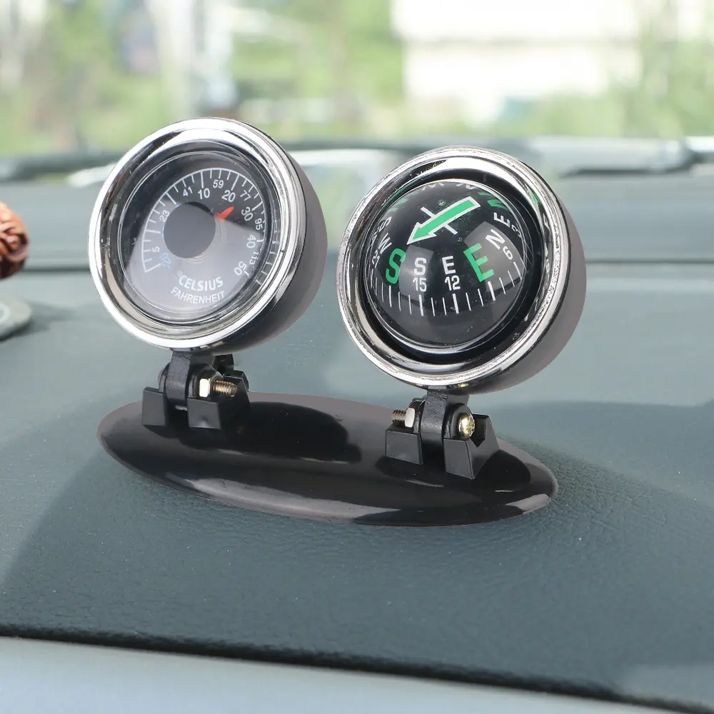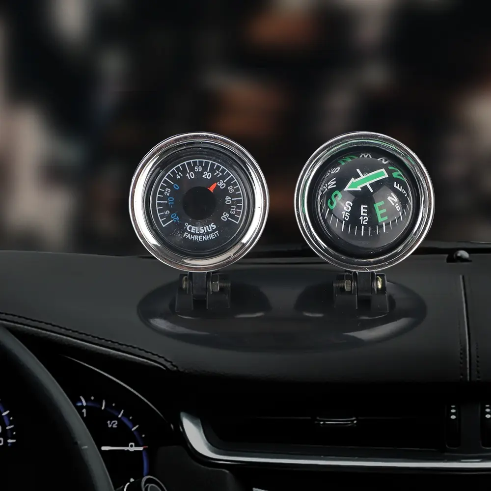 2 in 1 Car Interior Decoration Ornaments Compass Thermometer Guide Ball Dashboard Mounting Auto Truck Off Road 4x4 Accessories