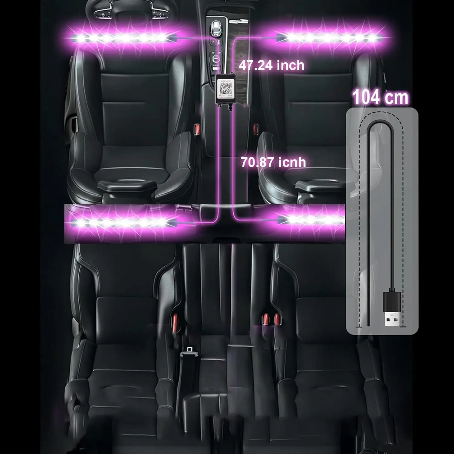 Multiple Control Methods:Control the LED interior lights using either the included remote or the Bluetooth app. Adjust the brightness, color, and timing effortlessly, making it easy to enhance your car's interior lighting at any time