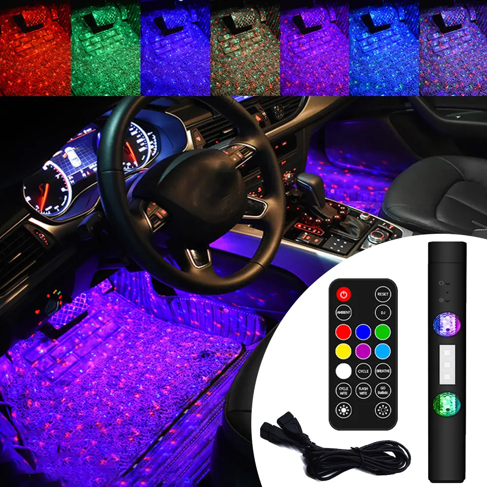 Car LED Lights Interior, Multi-colored LED Star Projector Light with Remote Control and DIY Mode, Music Sync Under Dash Lighting Kit for Cars, Trucks, SUVs, DC 12V