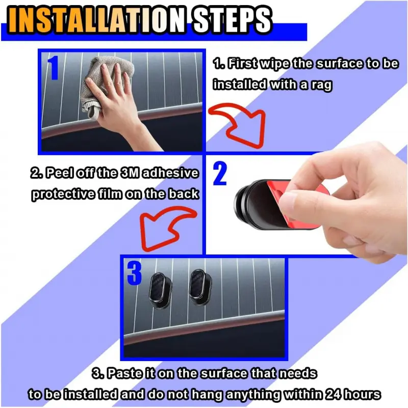 [Easy to Install]: The car mini hooks are easy to install, no tools are required.Simply peel off the backing film and stick it to a smooth, clean surface in just a few seconds.After installation, please let it sit for 24 hours without loading to ensure strong adhesion.
