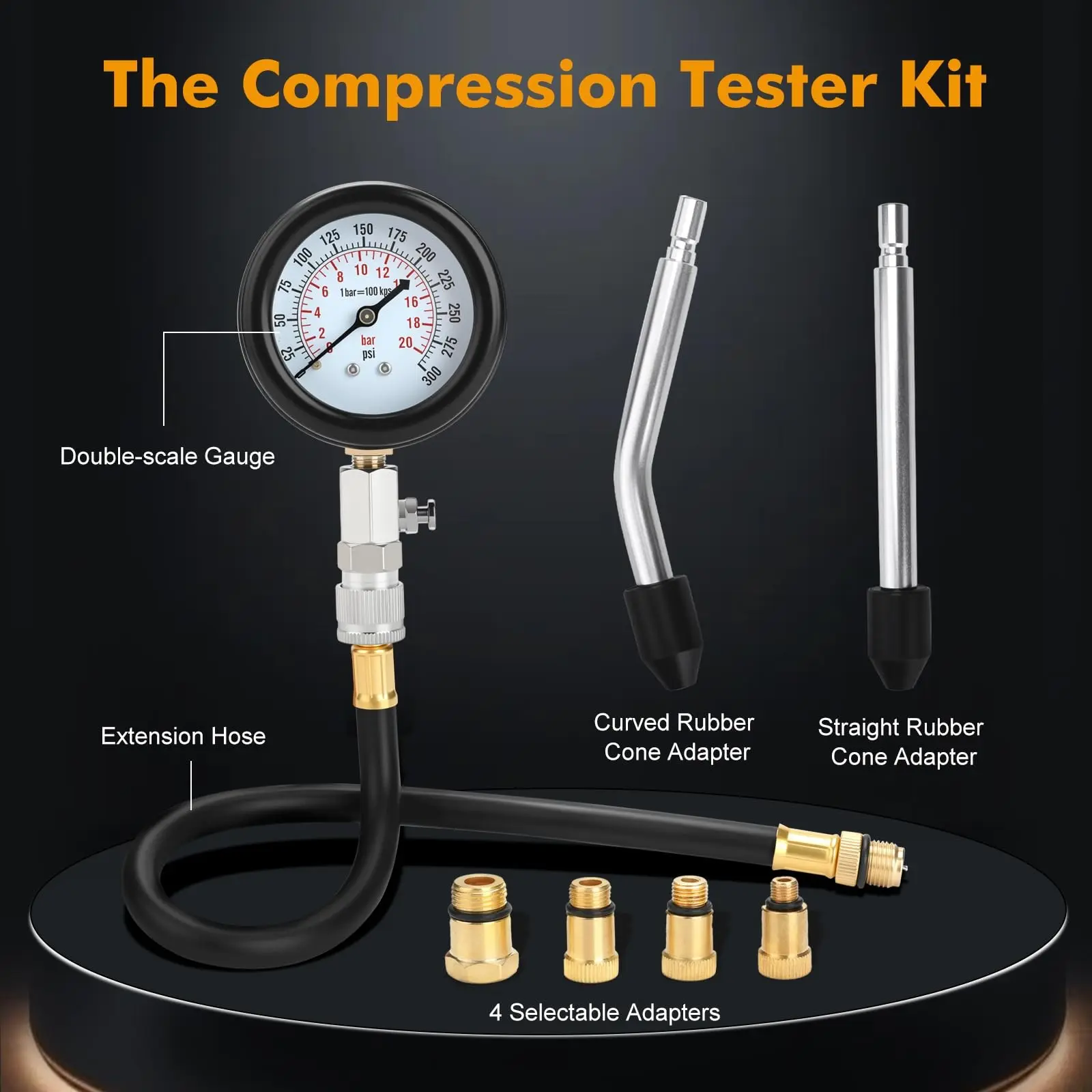 【Comprehensive Kit】: Includes 8 essential tools for engine compression testing, ensuring thorough diagnostics.