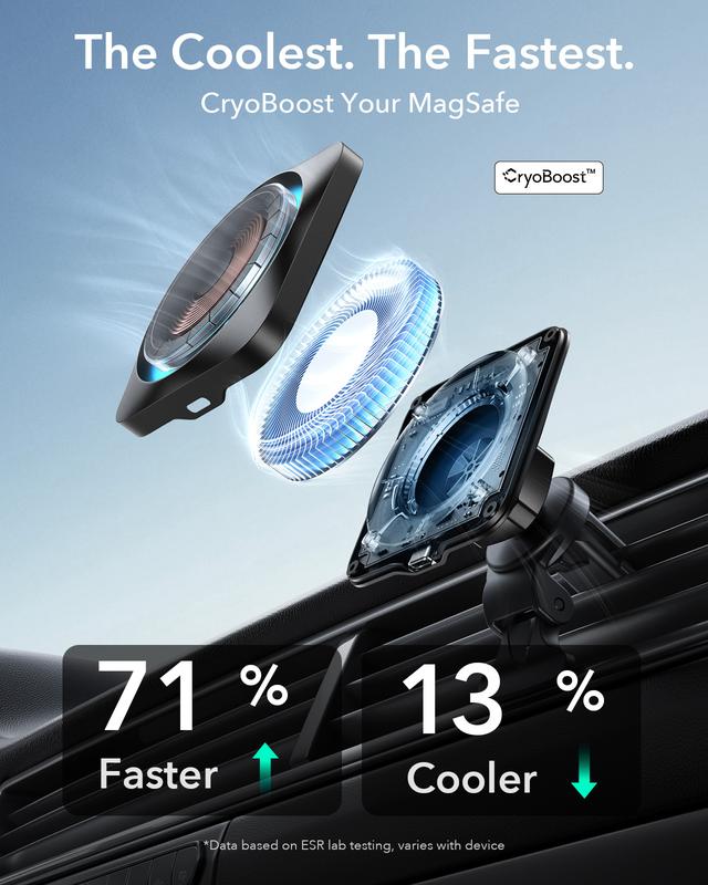 Ever struggled with your phone slipping off the car charger or overheating during a road trip? The ESR Qi2 15W MagSafe Car Mount Charger is here to save your drive. Designed specifically for iPhone 15, 14, 13, and 12 series, this Qi2-certified charger delivers fast, reliable 15W wireless charging combined with CryoBoost cooling technology. Its clever fan and heat-dissipating components keep your phone cool, so charging stays speedy without overheating. The powerful magnetic lock ensures your phone stays put, even on bumpy roads, especially with an official MagSafe or ESR magnetic case. You can mount it on your air vent or dashboard thanks to the strong vent clip and adhesive, plus enjoy 360° phone rotation for the perfect view. Inside the box, you get the charger, vent mount, dashboard adhesive, and USB-A to USB-C cable for easy setup. ESR also offers helpful setup videos, FAQs, and a 12-month warranty with lifetime support. Ready to keep your phone charged and cool on every drive? Grab this smart car mount charger and hit the road with confidence!