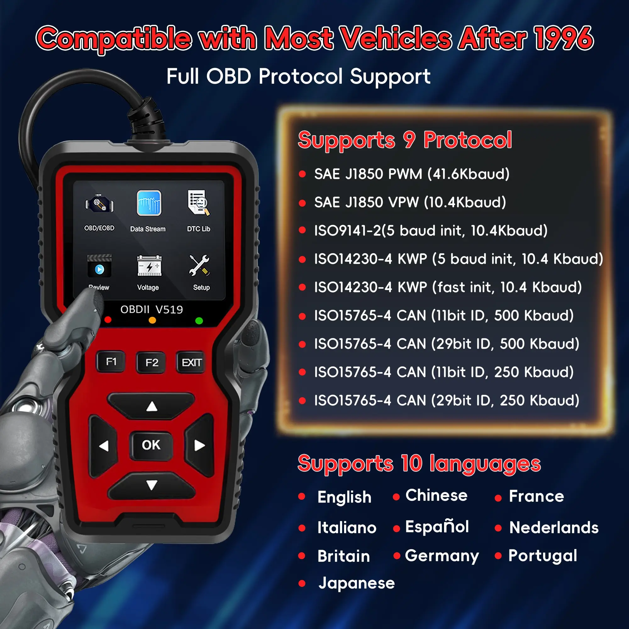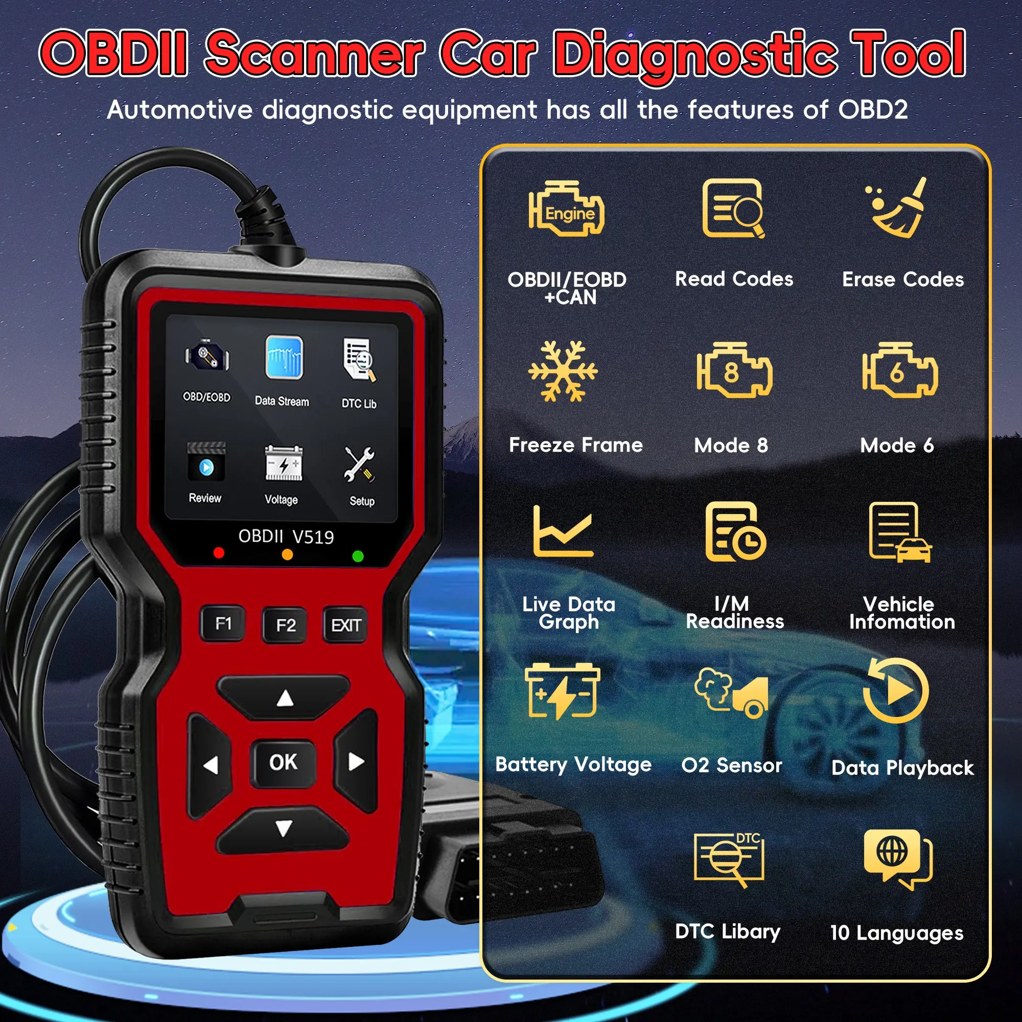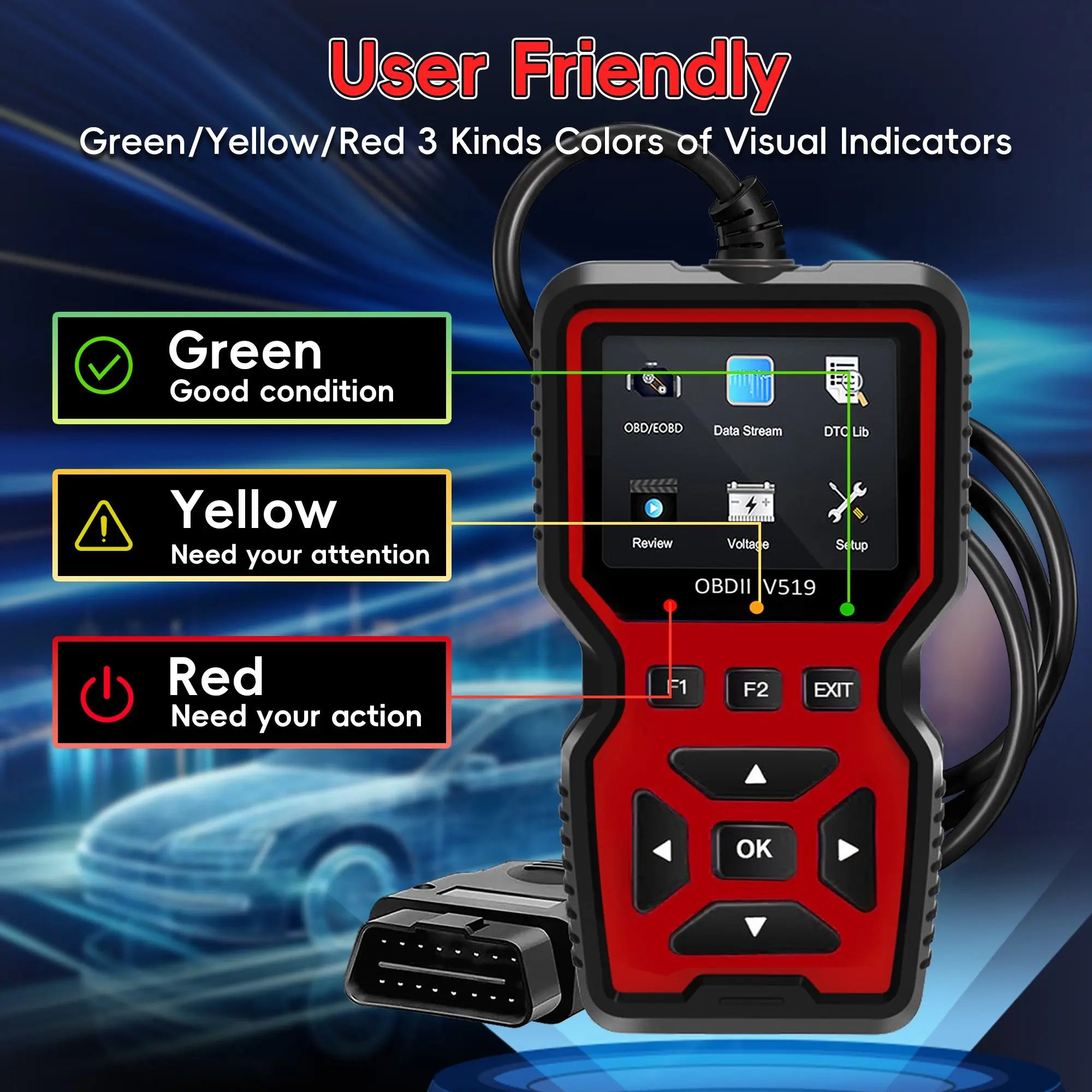 【Engine Code Reading】: Read engine trouble codes quickly with this OBD2 scanner, helping identify issues efficiently during diagnostics.