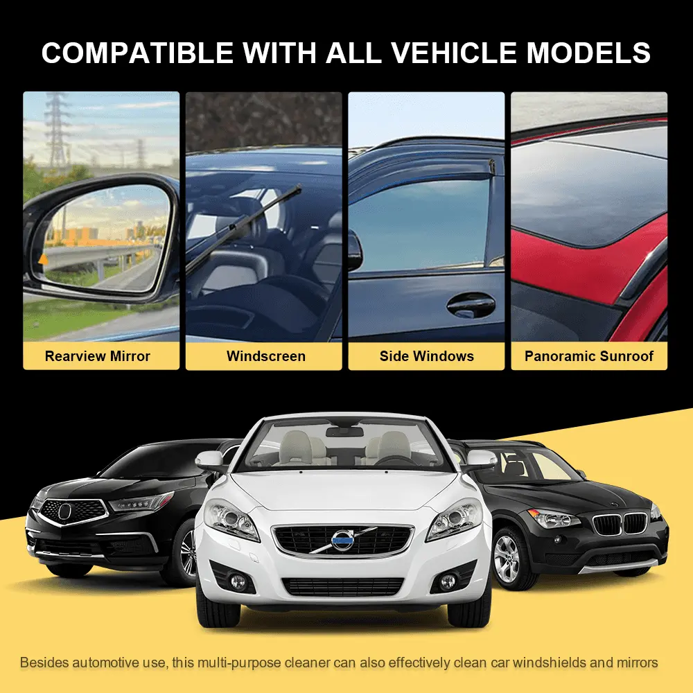This glass oil film cleaner is highly effective in cleaning, effectively removing spots and water marks on the glass, residual gum/insect glue/bird droppings, etc., improving window visibility and transparency, ensuring clear and safe visibility, and safer driving!