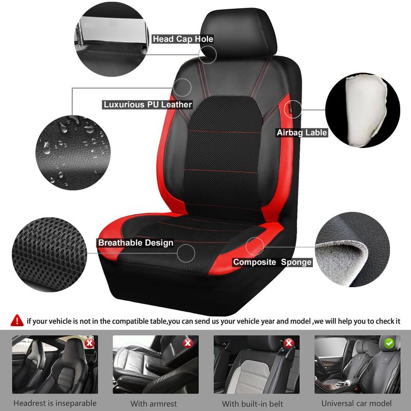 CAR PASS 2/5 seats Universal Leather Two Front Seat Covers,Sport seat Covers fits Most Cars, SUVs, Trucks, and Vans Airbag Compatible