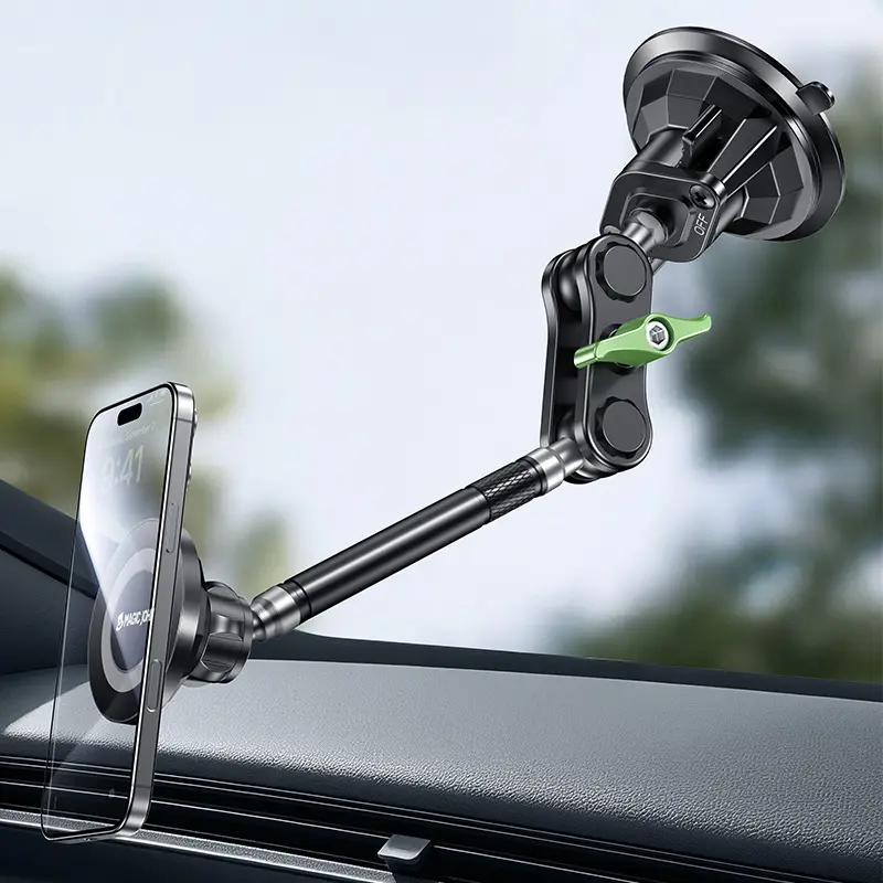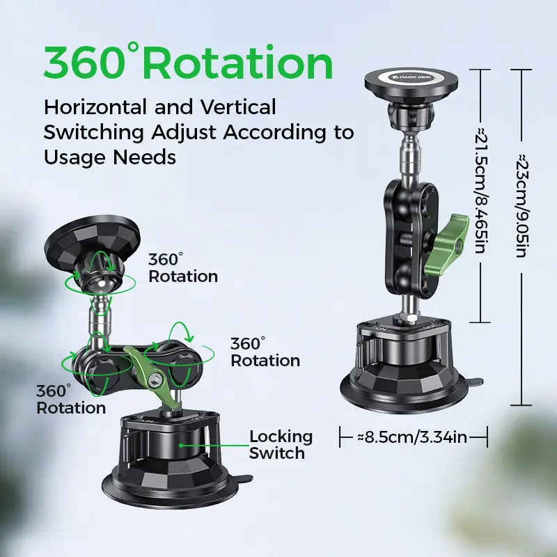 Ever struggled to keep your phone steady while driving or streaming? The MAGIC JOHN car phone holder is here to fix that with ultra-durable aluminum alloy construction and a dark lock anti-shaking feature that keeps your device rock solid. Its upgraded magnetic mount works perfectly with regular and MagSafe iPhone cases from the 12 to 16 series, so no worries about compatibility. Thanks to three 360° ball joints, you can swivel and tilt your phone to the perfect angle for navigation, calls, or hands-free videos. Installation is a breeze: just clean your windshield or window, place the suction cup, and twist the knob to lock it in place. The reusable suction cup holds up to 11 pounds, so your phone stays put even on bumpy rides. Plus, this versatile holder isn’t just for cars — use it for live streaming, cooking tutorials, or study sessions anywhere you need a steady phone mount. The package includes a stand, extension arm, and magnetic plate so you can customize your setup. Ready to upgrade your phone mounting game? Grab your MAGIC JOHN holder today and enjoy hands-free convenience wherever life takes you!