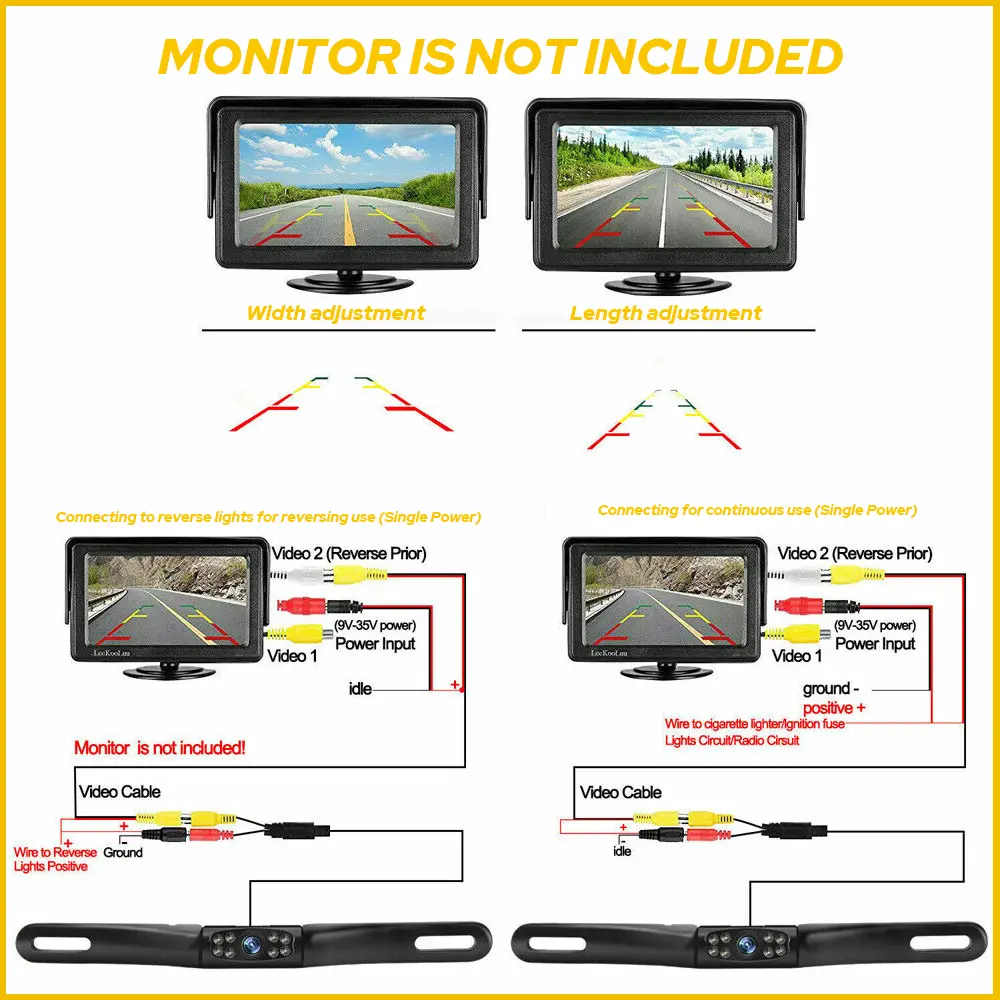 It is easy to connect a backup camera with almost all monitors or DVDs with video input, which needn't change the structure and appearance of your car.