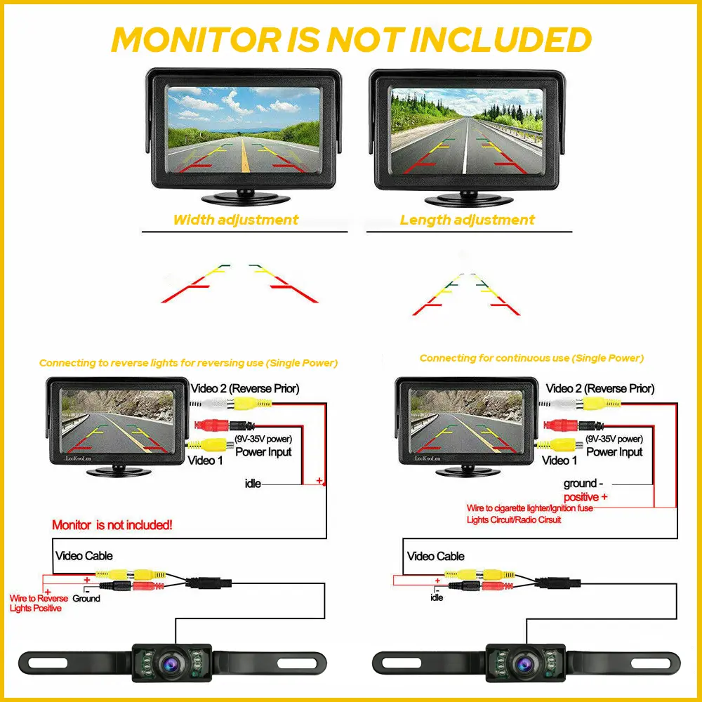 It is easy to connect a backup camera with almost all monitors or DVDs with video input, which needn't change the structure and appearance of your car.