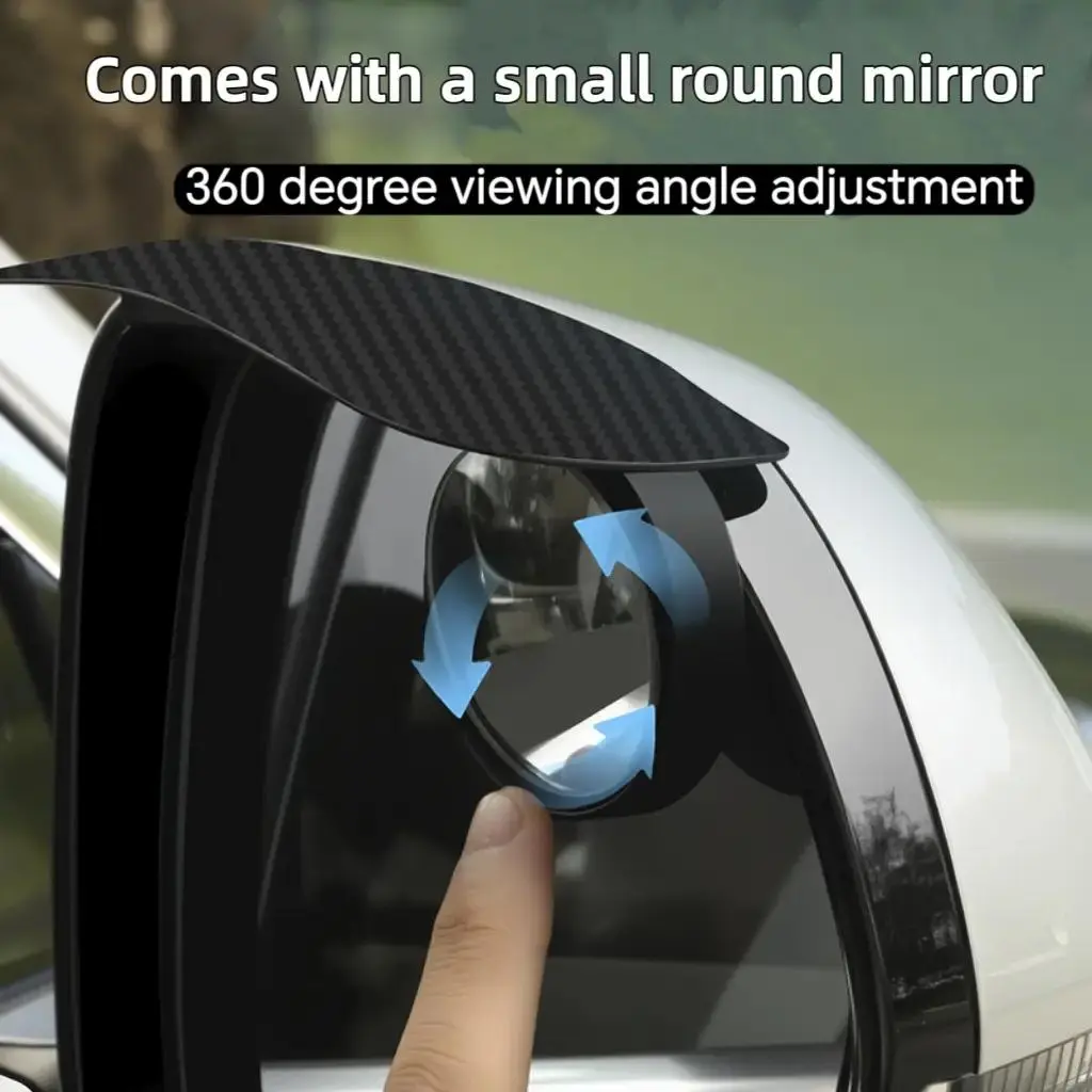 2pcs Car Rearview Mirror Rain Visors are designed to protect your visibility during rainy conditions. These rain guards come with a small round mirror, offering 360-degree auxiliary blind spot monitoring. Perfect for car accessories, they ensure safer driving.