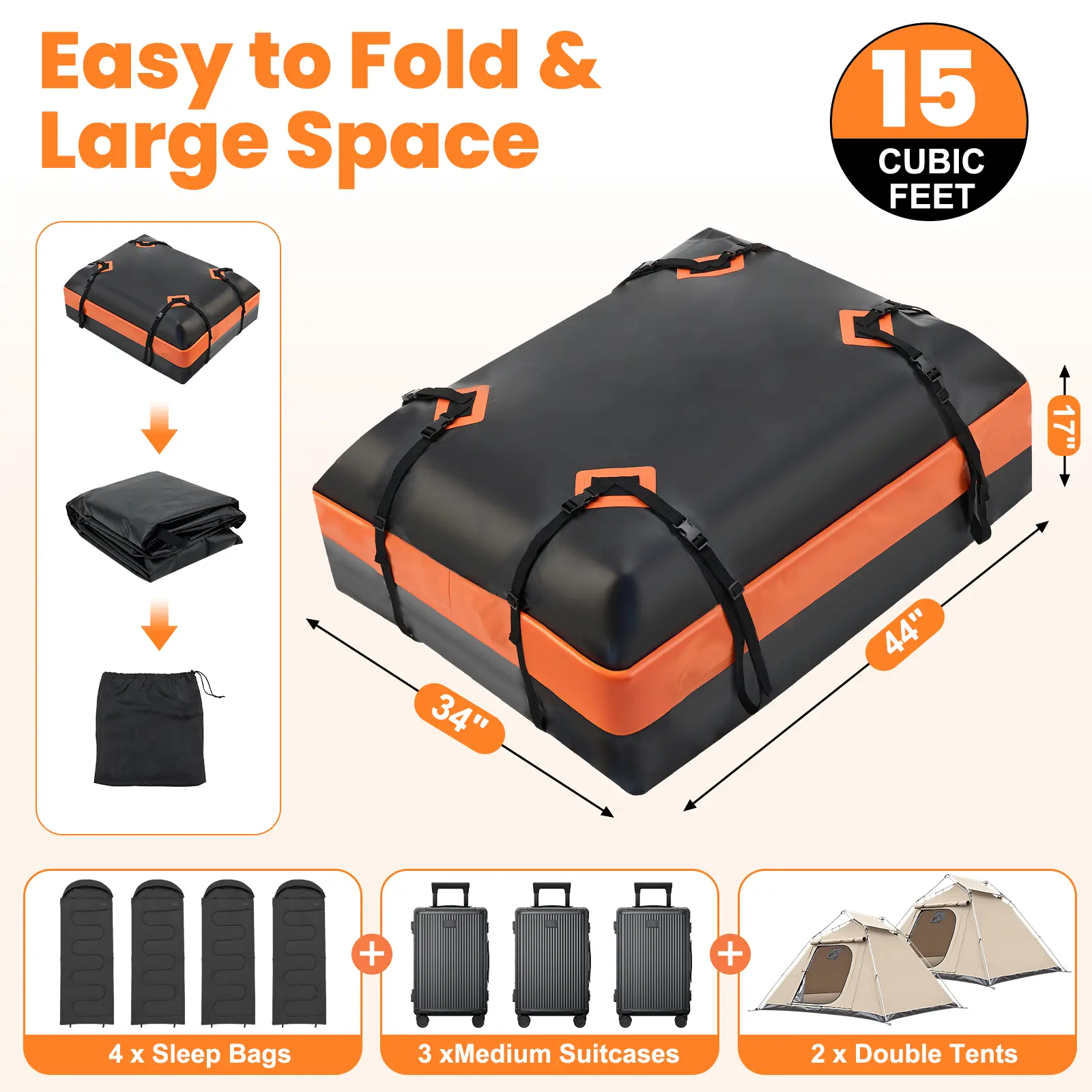 ·Spacious 15 Cu Ft Storage: Generous 15 cubic feet capacity holds multiple suitcases, sleeping bags and tents maximizing your vehicle's cargo space, perfect for family road trips, cross-country adventures, camping getaways, or moving day. Say goodbye to cramped car interiors and make the most of your vehicle's roof space with this roomy cargo solution.