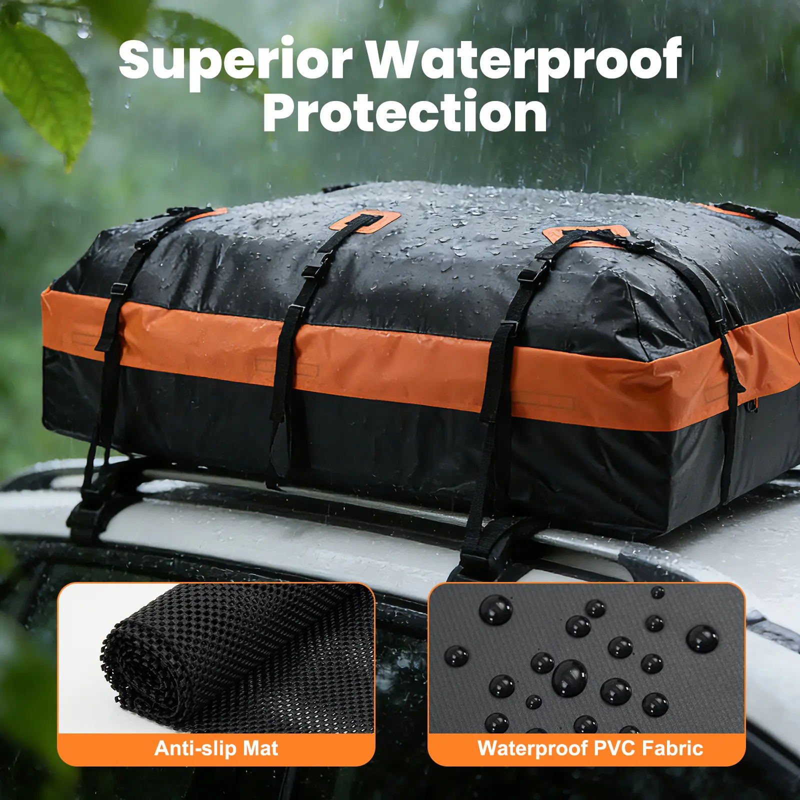 ·Ultimate Weather Protection: Roof bag is 100% waterproof, tearproof heavy-duty PVC, protecting your cargo from rain, snow, and tear. Rooftop Cargo Carrier featuring enhanced sealed seams to provide all-round protection for your cargo, ensuring your items stay dry and intact throughout the journey.