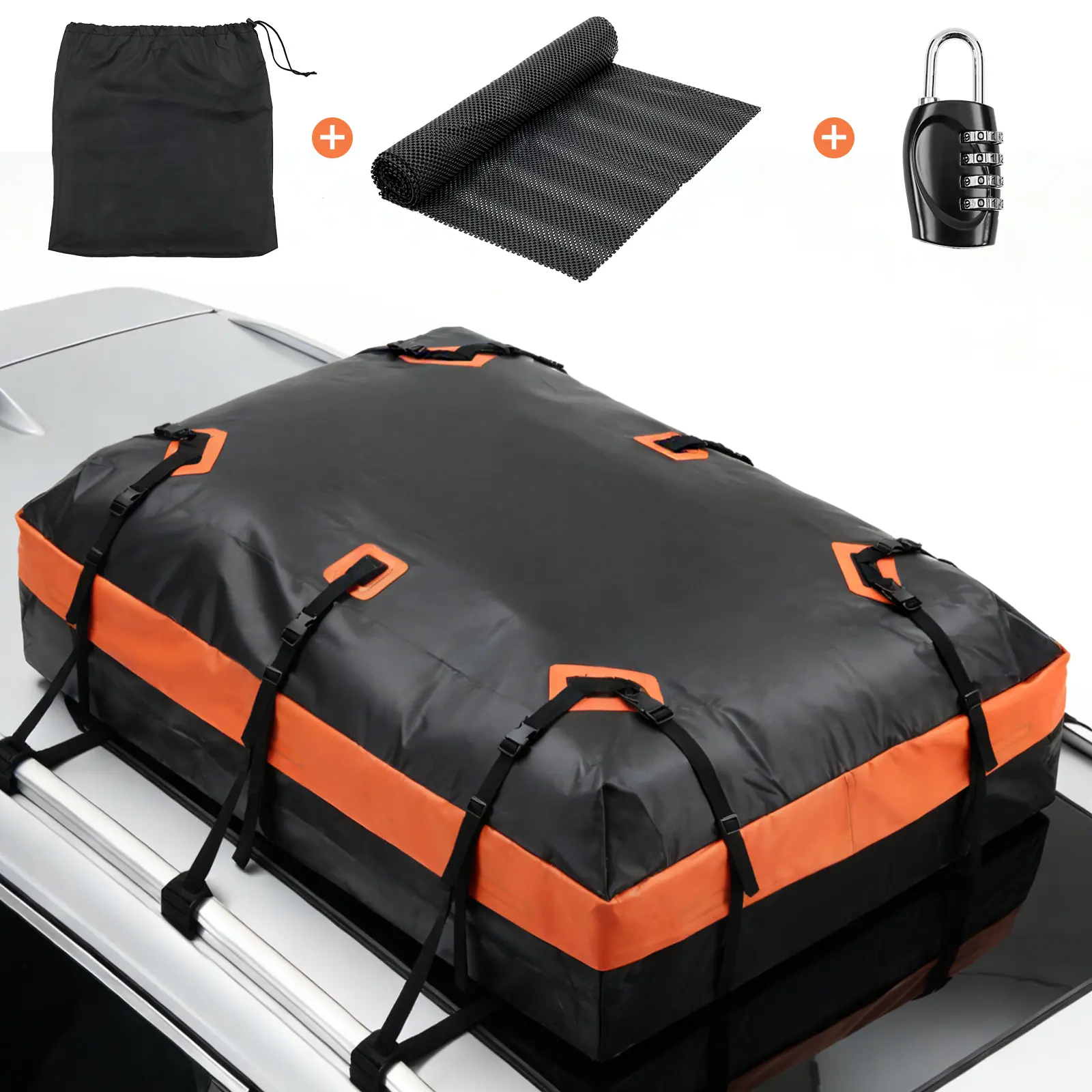 ·Enhanced Security & Stability: Roof rack storage includes reinforced straps, door hooks, Anti-Slip Mat, combination lock, That not only prevents from sliding, but also increases the security of your luggage; non-slip mat will keep your cargo bags firmly in place prevents paint scratches, prevents excessive noise, Enhances driving safety.
