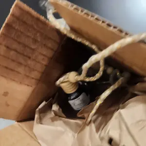 Order deliverer in a plastic bag by USPS. Supplier messaged, waiting on a reply. Can’t send them pictures until they reply to my message. Was it poorly packed? Poorly handled by USPS? I don’t know, but I do know I do not have mop soap or a car air freshener so I can’t rate the actual product.