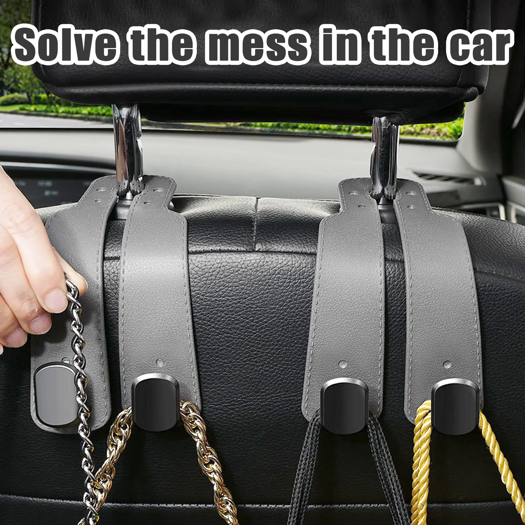 Headrest Hooks for Car: Headrest hooks for car are made of high quality material with excellent toughness and wear resistance. The metal double layer design enhances the load