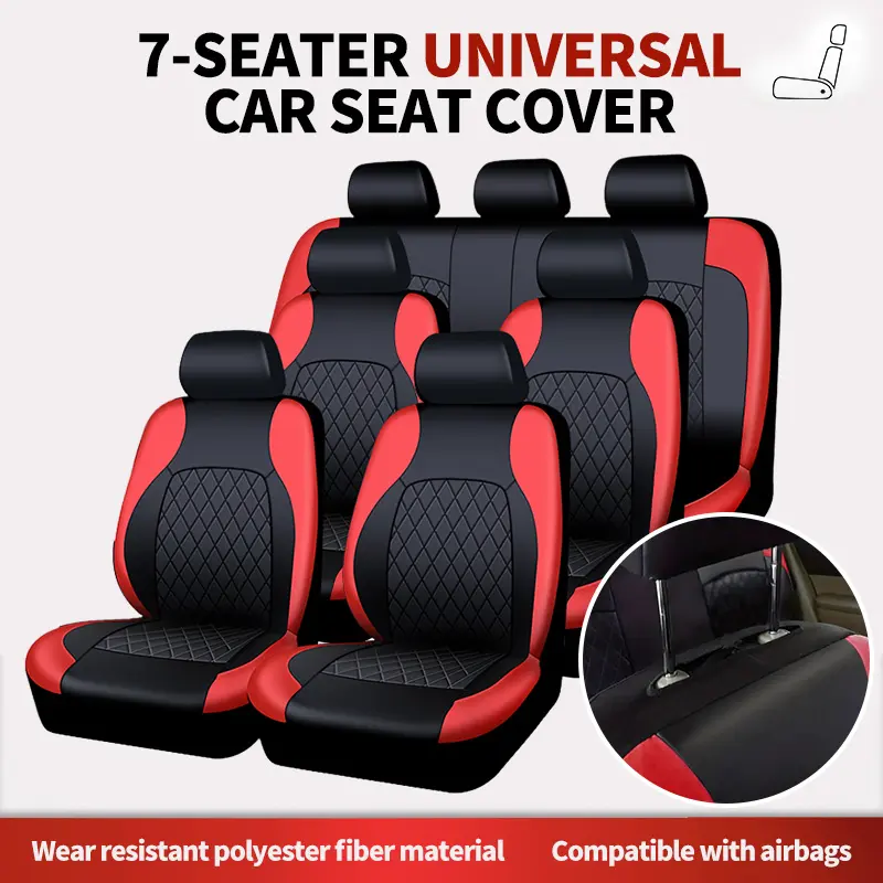 Upgrade your 7-seater vehicle with this PU Leather Car Seat Cover set. It includes 4 single seat covers, 1 rear backrest cover, and 1 rear bench cover. Designed for comfort, durability, and style, it keeps seats safe from wear, stains, and dirt. The sleek design enhances your car's interior. Airbag compatibility ensures safety. Easy installation with straps and hooks.