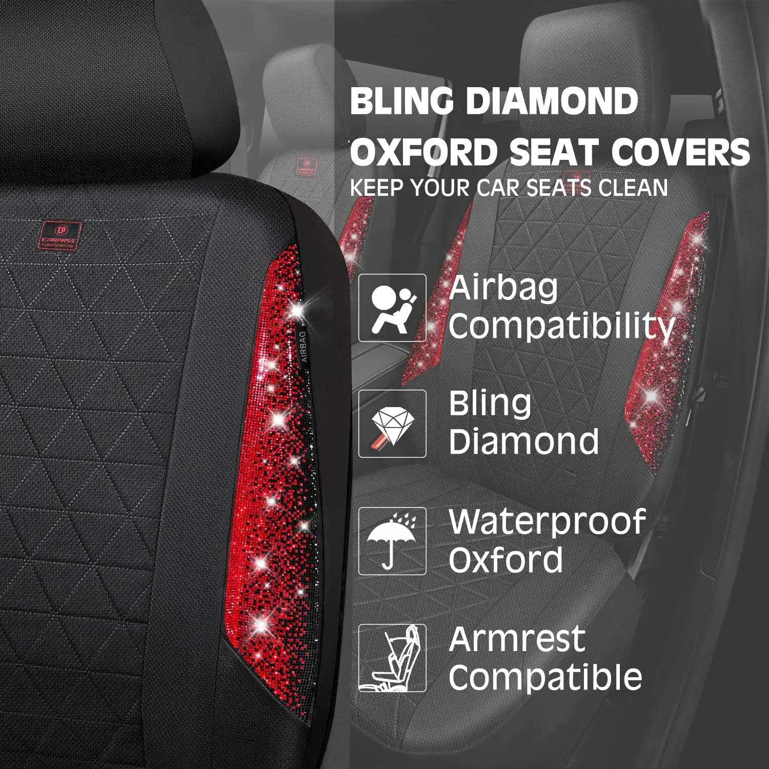 Refresh your car if you install the bing bling crystal diamond oxford seat covers, water Resistant oxford material.