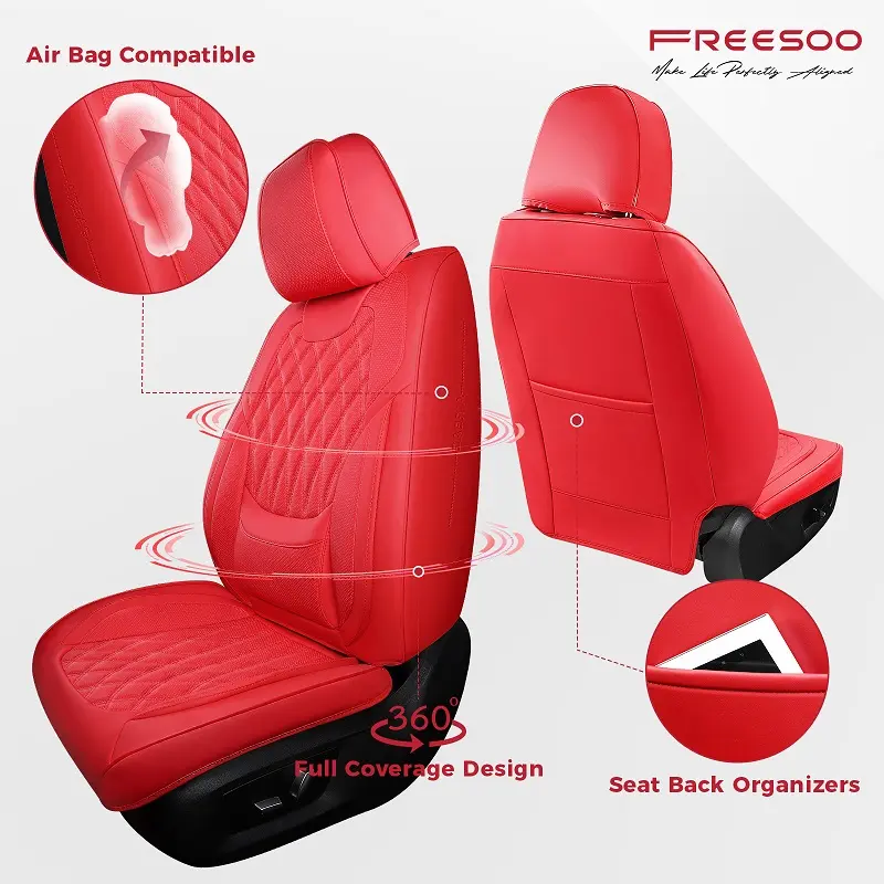 Tailored for all auto seat cover details, it doesn't affect airbags, safety belts, or child seats. The fully wrapped front covers include an anti-slip bottom and back organizer for enhanced convenience and safety. Easy to install with the provided accessories set.