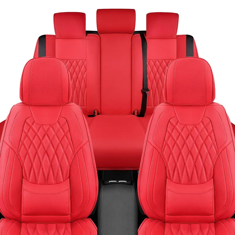 The installation process is simple. Follow the video and manual guide for a quick 30-minute setup. The set includes 2 front and 3 rear seat covers, suitable for various vehicles like Toyota, Honda, Nissan, Ford, Jeep, Kia, Chevy, Lincoln, Lexus, Dodge, Mercedes-Benz, Hyundai, Buick, Volkswagen, Cadillac, Subaru, Infiniti, Mazda, GMC, Volvo, Suzuki, Jaguar, Acura, etc.