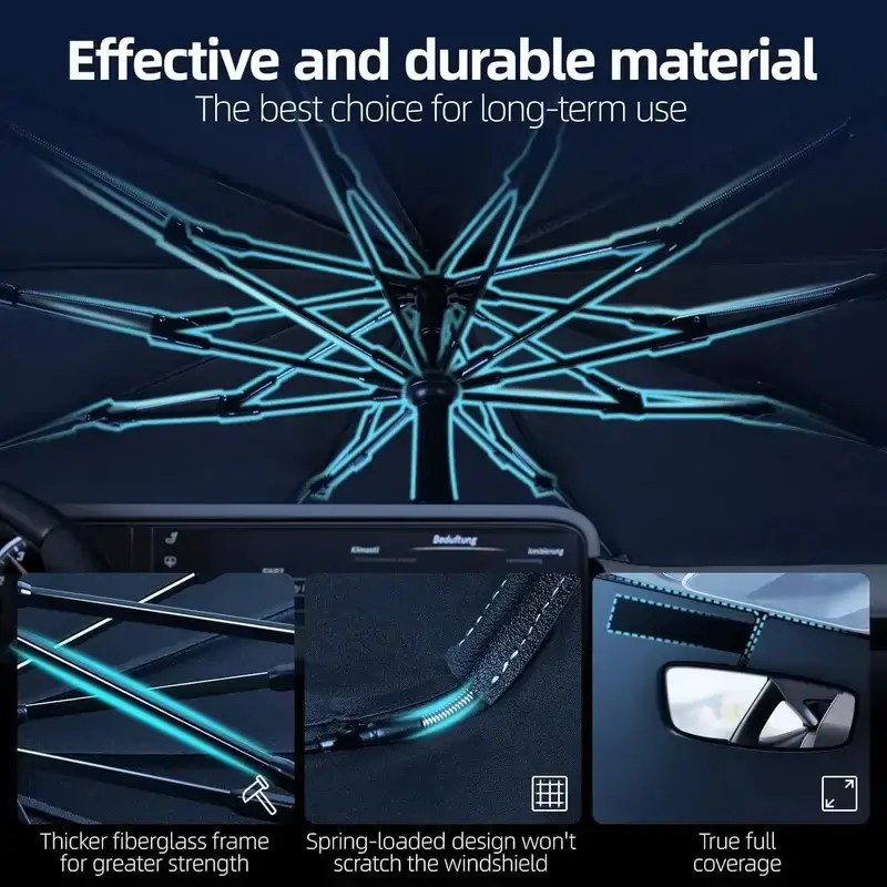 ·Foldable Car Sunshade: This umbrella-style sunshade is designed for easy folding, making it convenient to store and carry. 🚗