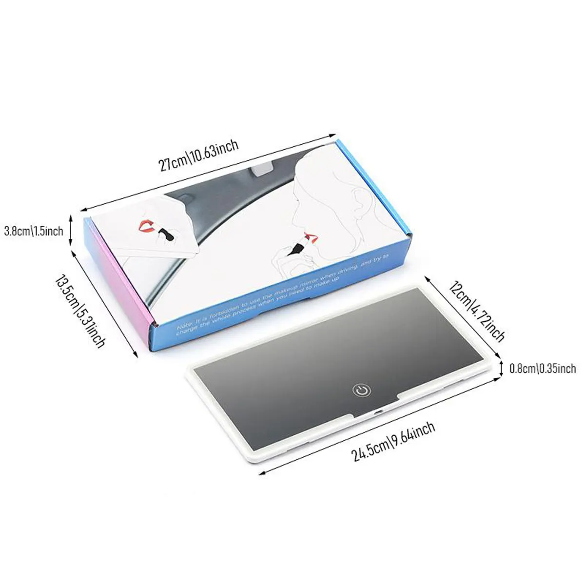 Great mirror but took a long time to arrive, and on top of that there was no charging port. The hole was there to stick the cord in but the part to receive the electricity was missing. Great quality mirror tho, pretty big.