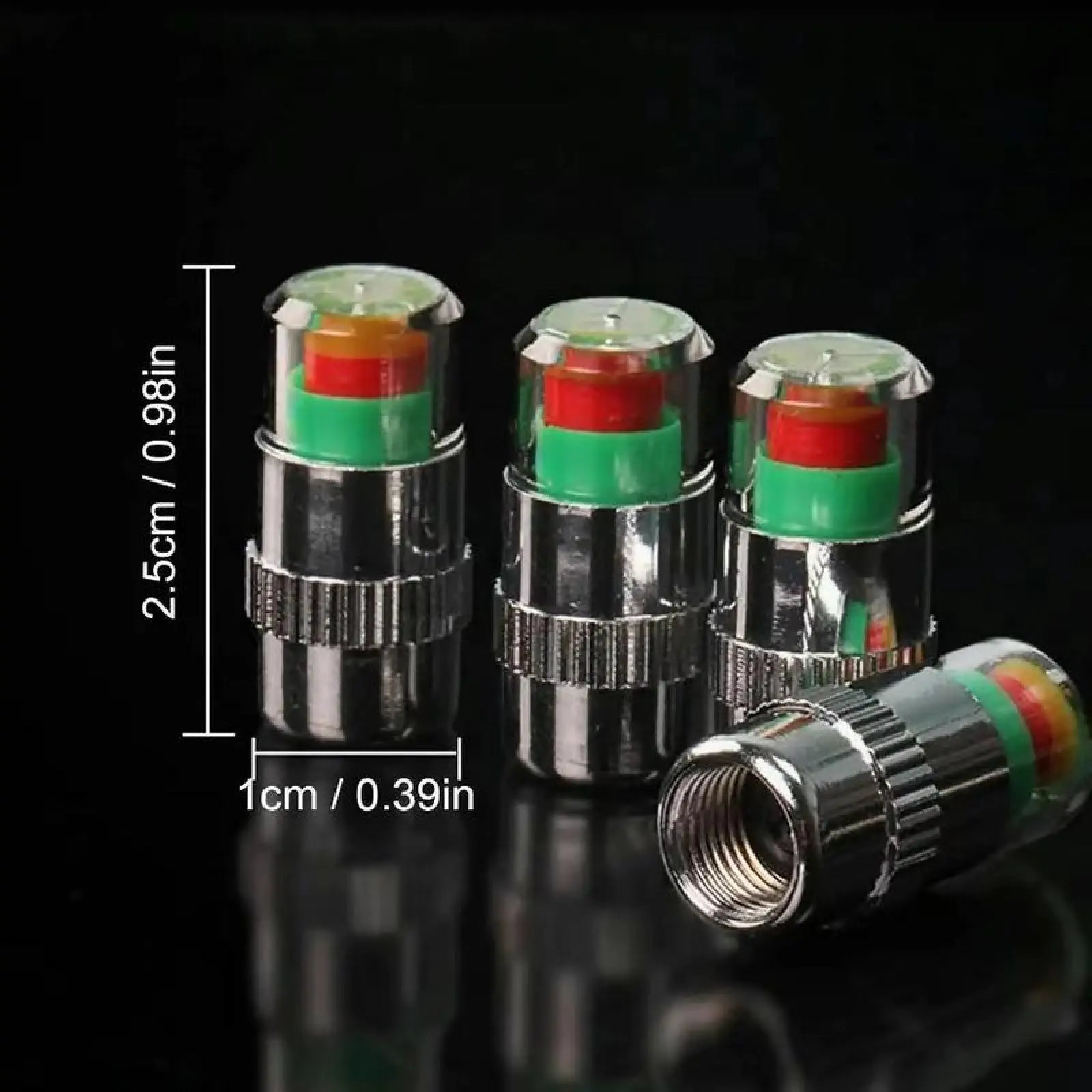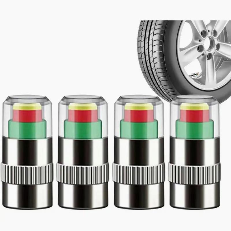 High Quality -- Material of car tire pressure indicator caps made of stainless steel with a built-in copper chrome plated core for extra durability, Visually alerts you when the tire pressure is low.