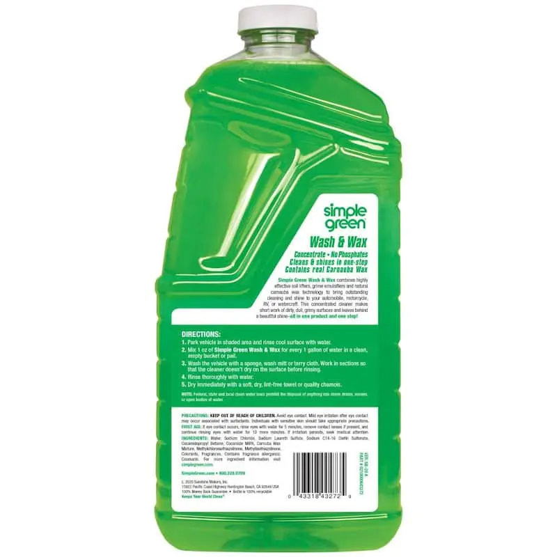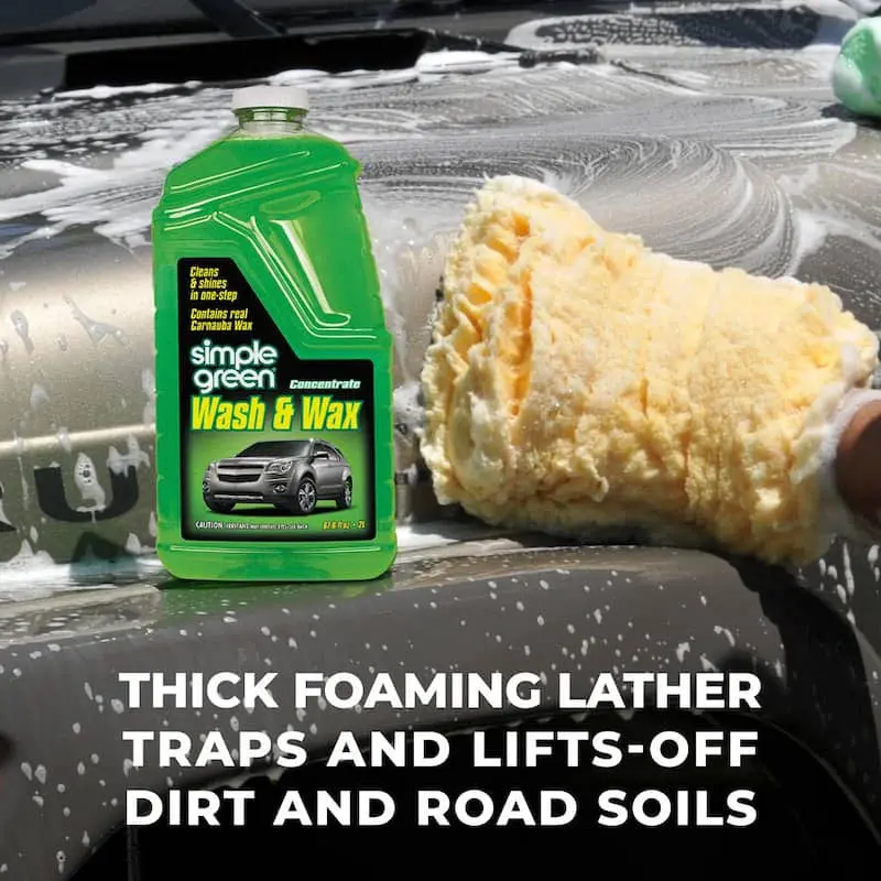 5. Simple Green 67 oz. Car Wash and Wax, Car Wash with Real Carnauba Wax, Foaming Formula Cleans Dirt Grime and Bugs, Gentle on Paint and Clear Coat, Leaves a Polished Shine, for Cars Trucks RVs and Motorcycles, Streak Free and Wax Safe.