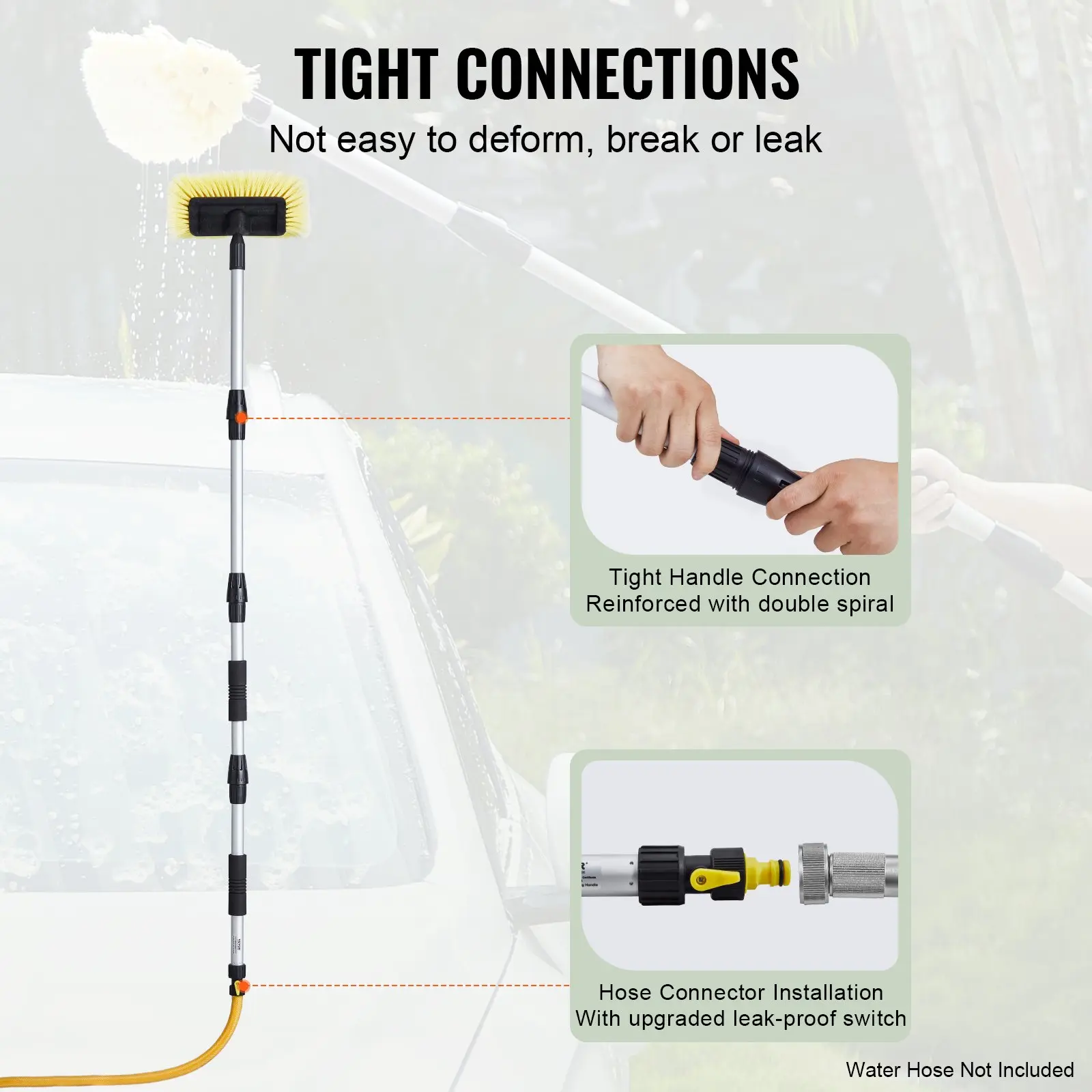 ·Secure Connection: This extendable car cleaning brush is designed with a double-spiral handle connection that provides exceptional stability and durability. It can withstand high water pressure, ensuring reliable performance without deformation, breakage, or leakage.