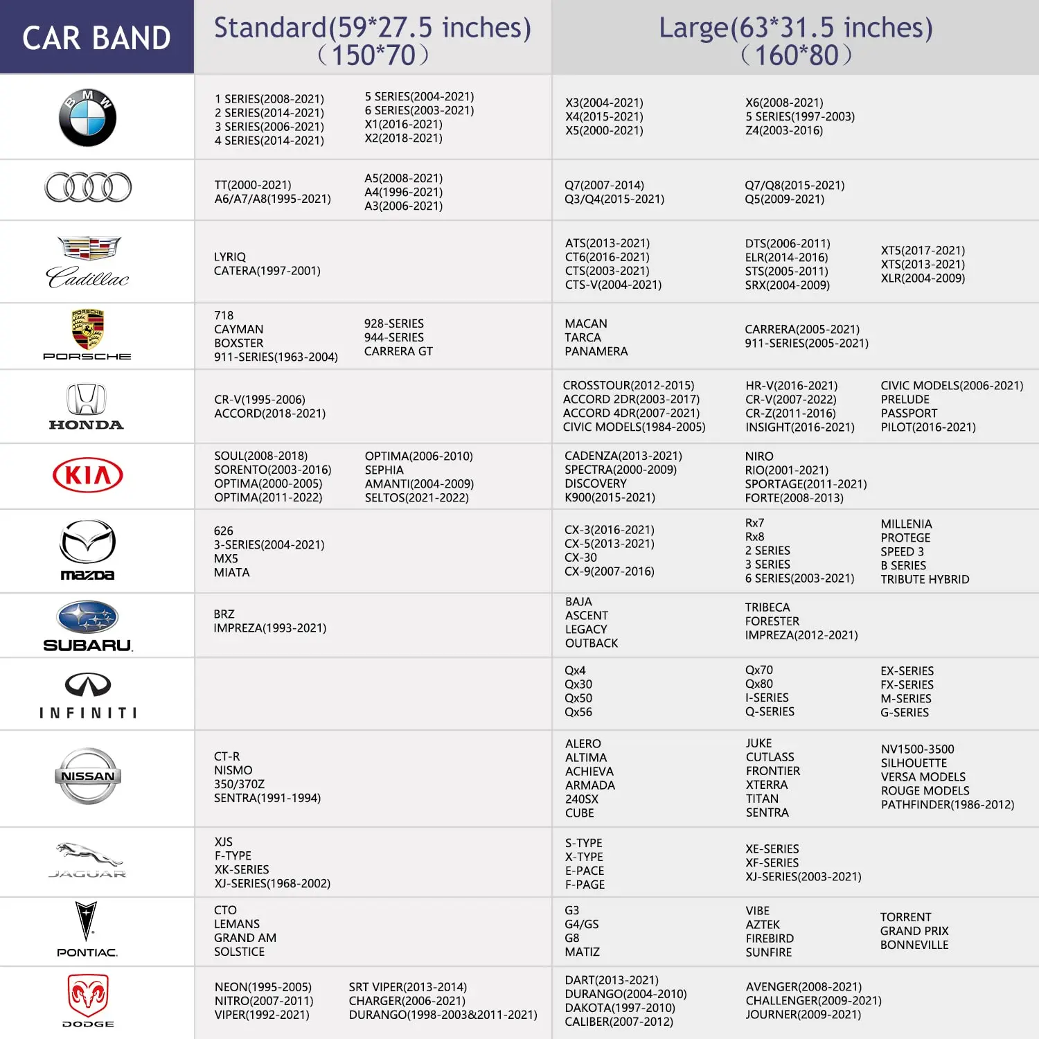 ·2 Size:There are 2 size that you could choice.Standard size is 59‘’x27.5‘’(LXW),which could fix for car windshield that is no larger than L 59" x 27". The larger size is L 63.7" x 32" W which could fix for car windshield that is no larger than L 64" x 30" W.You can chose the right sunshade size for your vehicle in the size chart