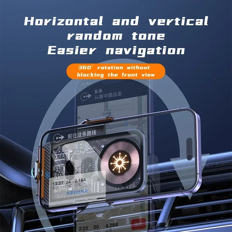 360-degree rotating cradle provides flexible choice of watching your phone or GPS while driving. That means there will be no blocked vision and you can get a perfect viewing angle with the car wireless charger mount.