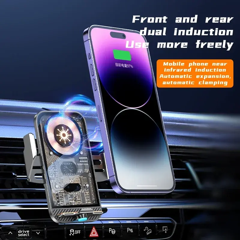 [Automatic Clamps & One Hand Operation] - This car wireless charger is equipped with automatic sensing technology. Two clips of the mount will automatically close and grip your phone when the phone is attached to the car holder; To release the phone, hand touch the top of the bracket, the clips will automatically open, then you can take the phone out.