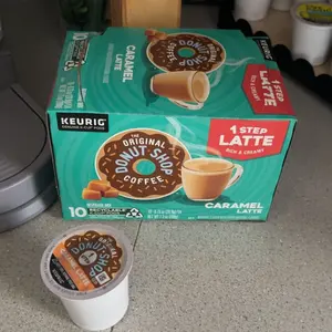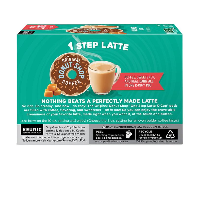 The Original Donut Shop® One Step Latte K-Cup® pods are filled with coffee, flavoring, and sweetener – all in one! So you can enjoy the crave-able creaminess of your favorite caramel latte, made right when you want it, at the touch of a button.