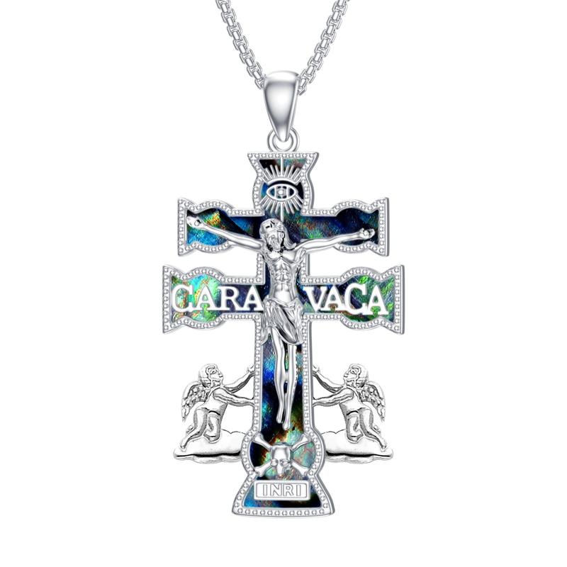 Caravaca Cross Necklace 925 Sterling Silver Caravaca Double Cross with Angels Crucifix Pendant Necklace Religious Jewelry Gifts for Women Men TikTokShopBlackFriday