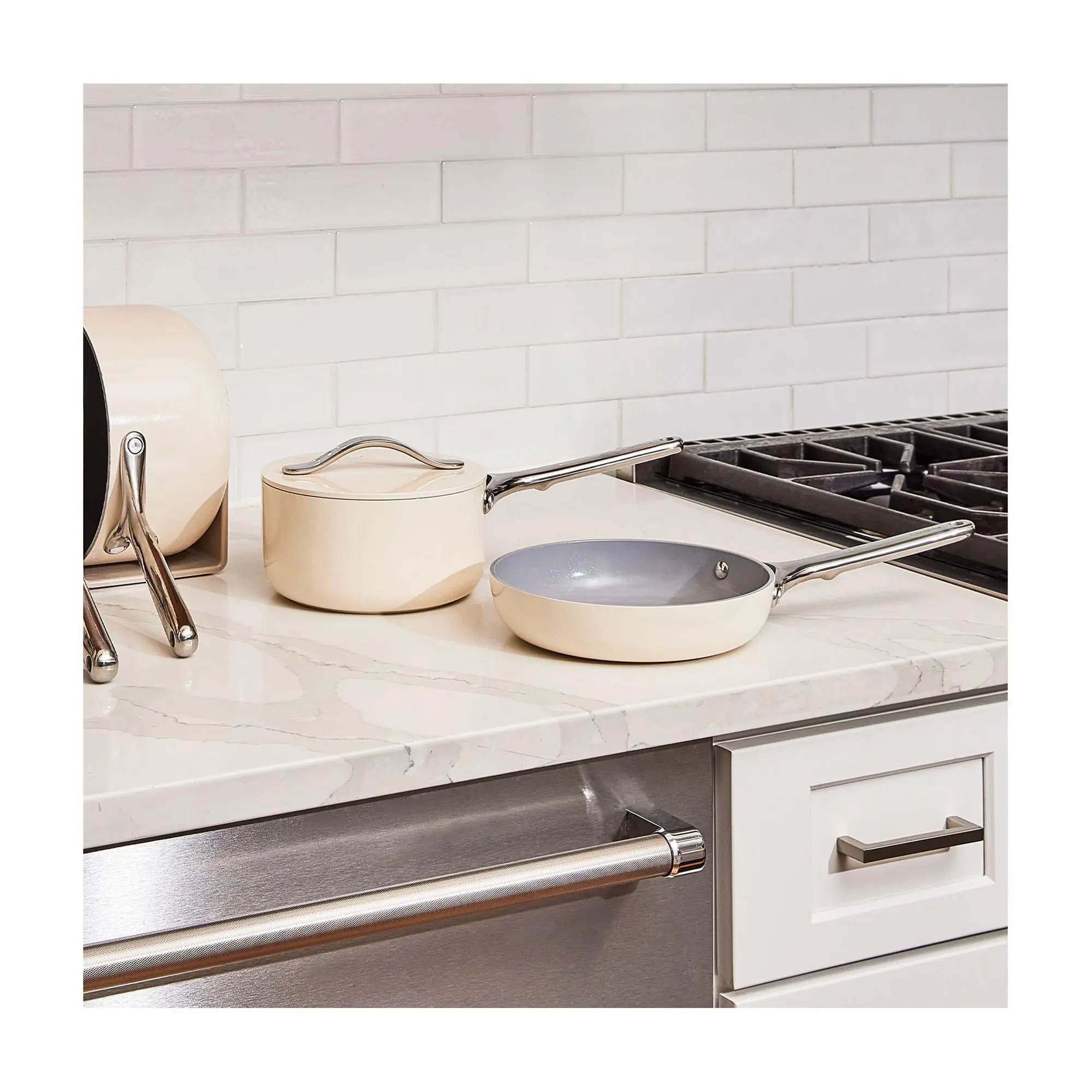 Cook up petite portions of all of your favorite meals with ease courtesy of this small-but-mighty nonstick ceramic-coated fry pan and sauce pan duo that's as attractive as it is functional. From Caraway Home.