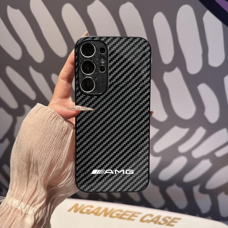 5. Carbon fiber pattern glass phone case, car logo, for S25, S24, S23, S22, S21, S20, S10, Plus, FE Ultra #SMBGBLKTXW1