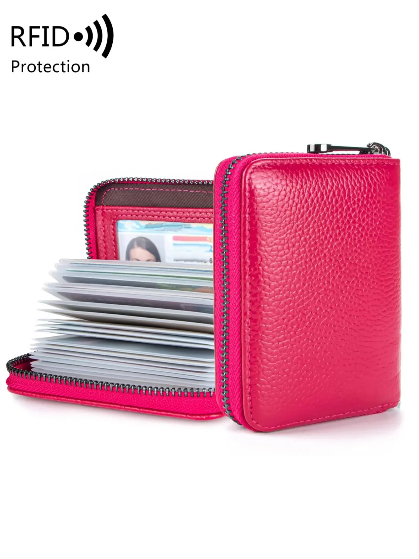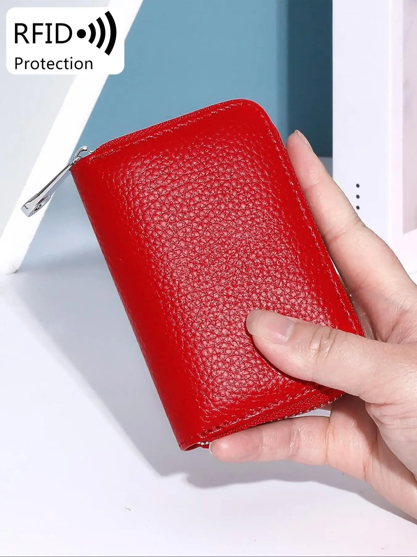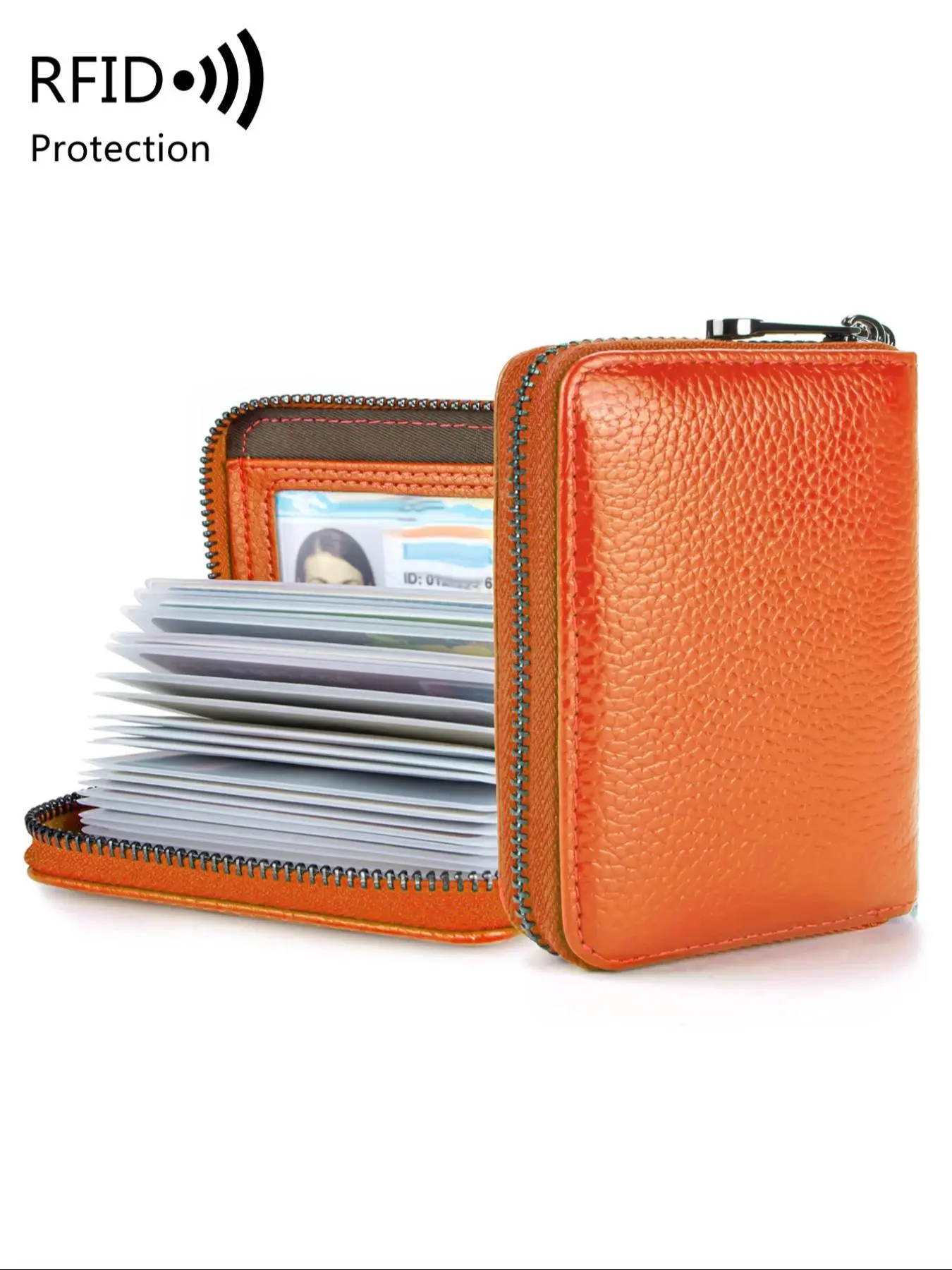 Summer Genuine Leather Solid Color Card Holder with Zipper, Vintage Multi-card Slot Card Holder, Casual Versatile Card Holder for Men and Women, Credit Card Organizer