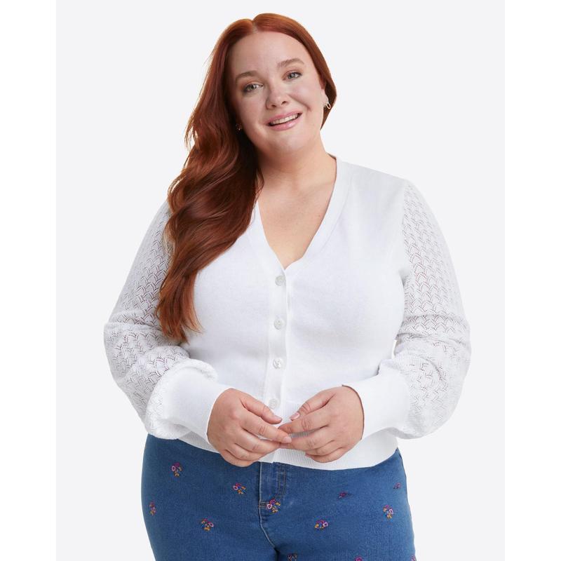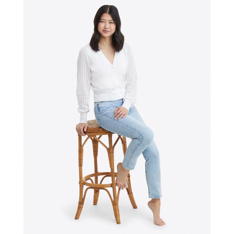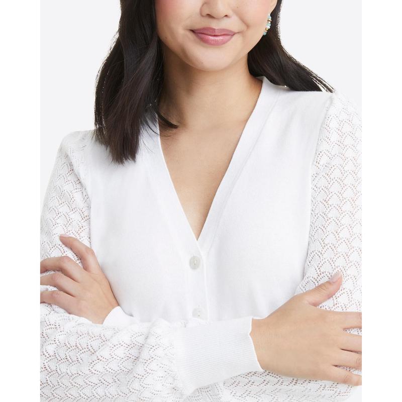 The perfect spring sweater, if we do say so ourselves. The Pointelle Sleeve Cardigan is made of 100% soft, breathable (and easy to care for) cotton. Blousy pointelle sleeves with fitted cuffs add a feminine touch, while a 5-button v-neck closure allows for a variety of styling options. Wear it buttoned up for a polished look or unbuttoned for a more relaxed vibe. A very versatile addition to your warmer weather wardrobe.
