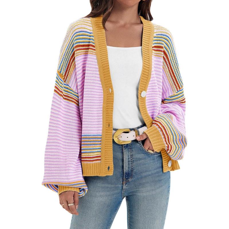 FMEYOA Womens Striped Cardigan Sweaters Oversized Puff Sleeve Button Up V Neck Color Block Knit Sweater CoatFMEYOA Womens Striped Cardigan Sweaters Oversized Puff Sleeve Button Up V Neck Color Block Knit Sweater CoatFMEYOA Womens Striped Cardigan Sweaters Oversized Puff Sleeve Button Up V Neck Color Block Knit Sweater Coat
