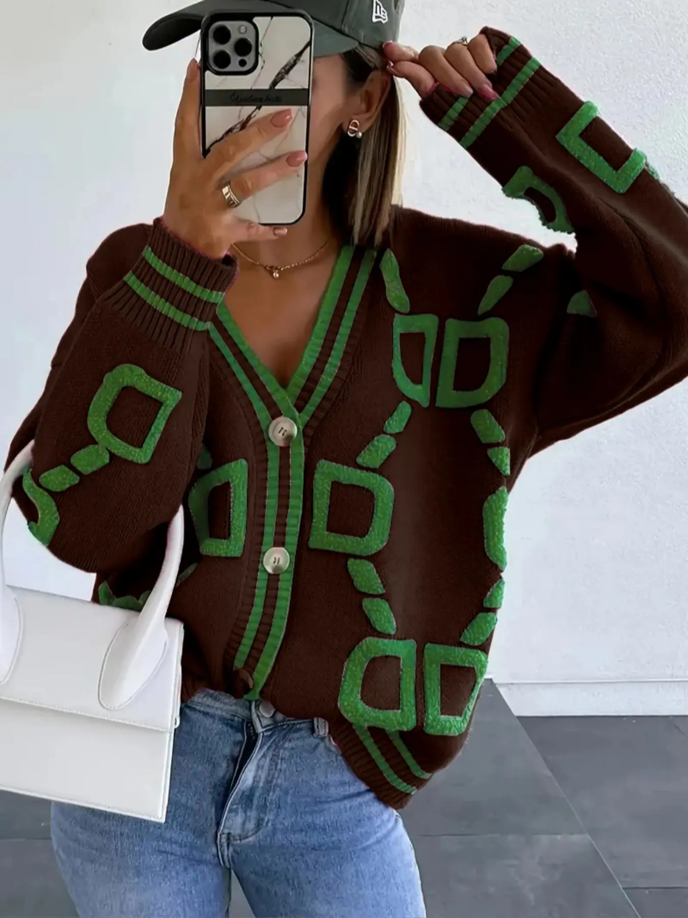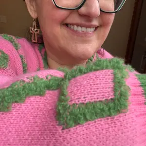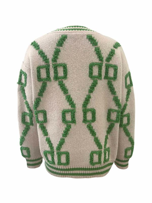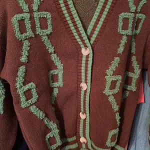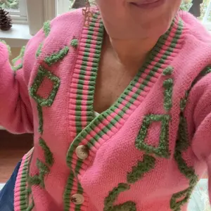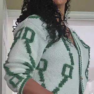 The design of this sweater is so cute but the design on the body of the sweater doesn’t match the cuffs or where the buttons are, it really ruined it for me. It’s not embroidered or dyed, it’s a bunch of little loops of strings and looks very odd/ cheap