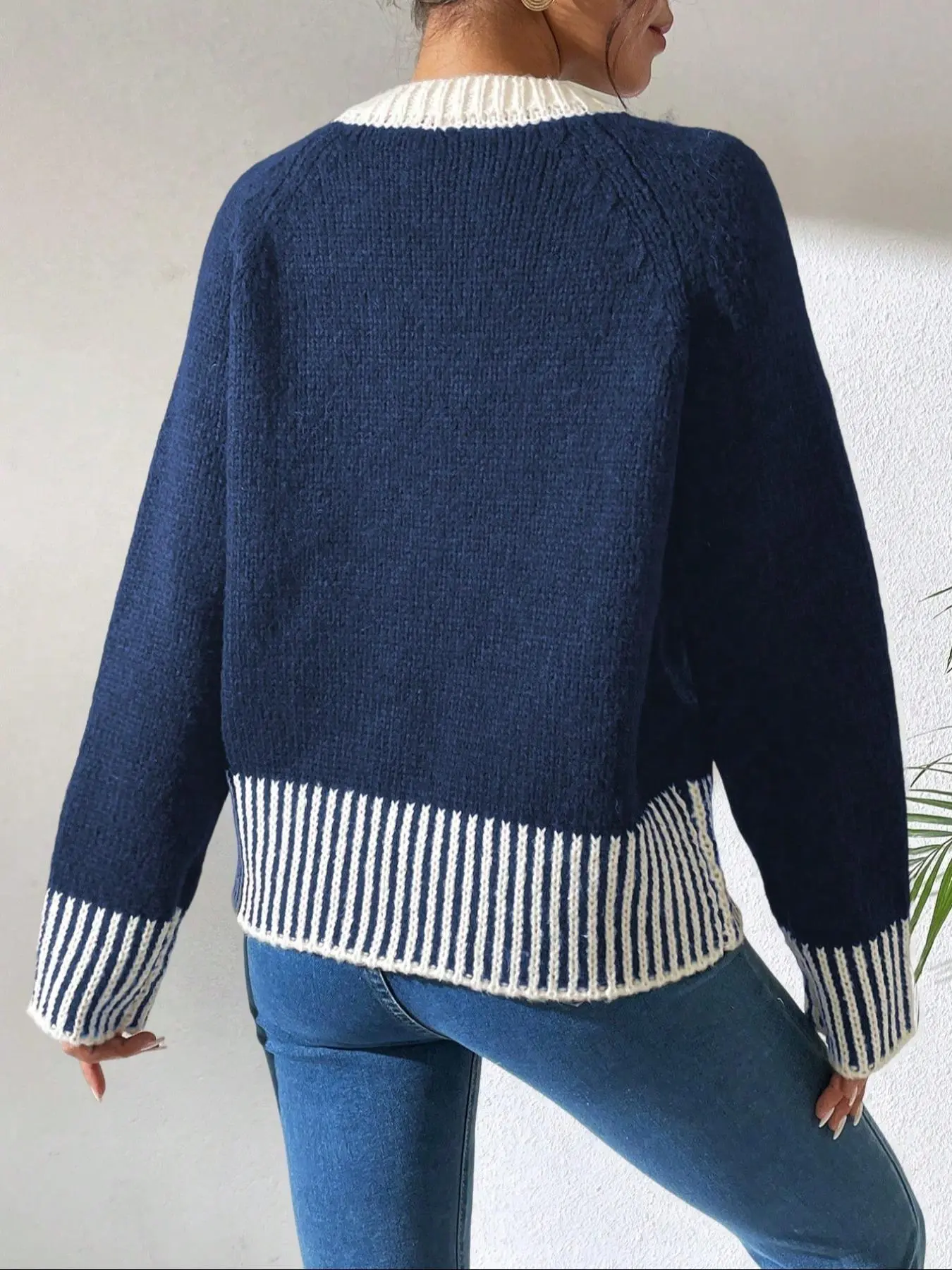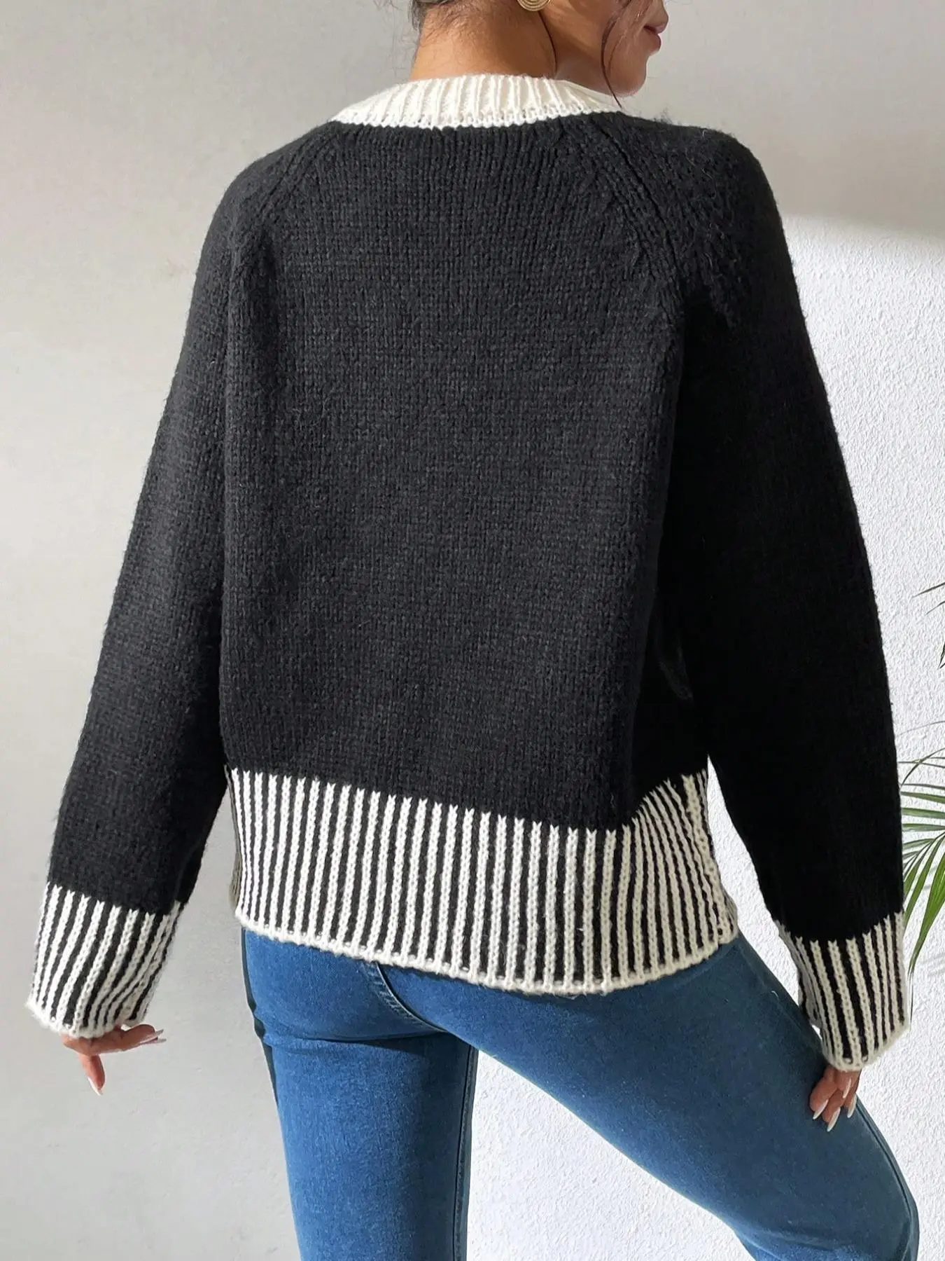 【Contrasting Features】: The cardigan showcases contrast binding that adds a distinctive touch, setting it apart from standard knitwear in your wardrobe.