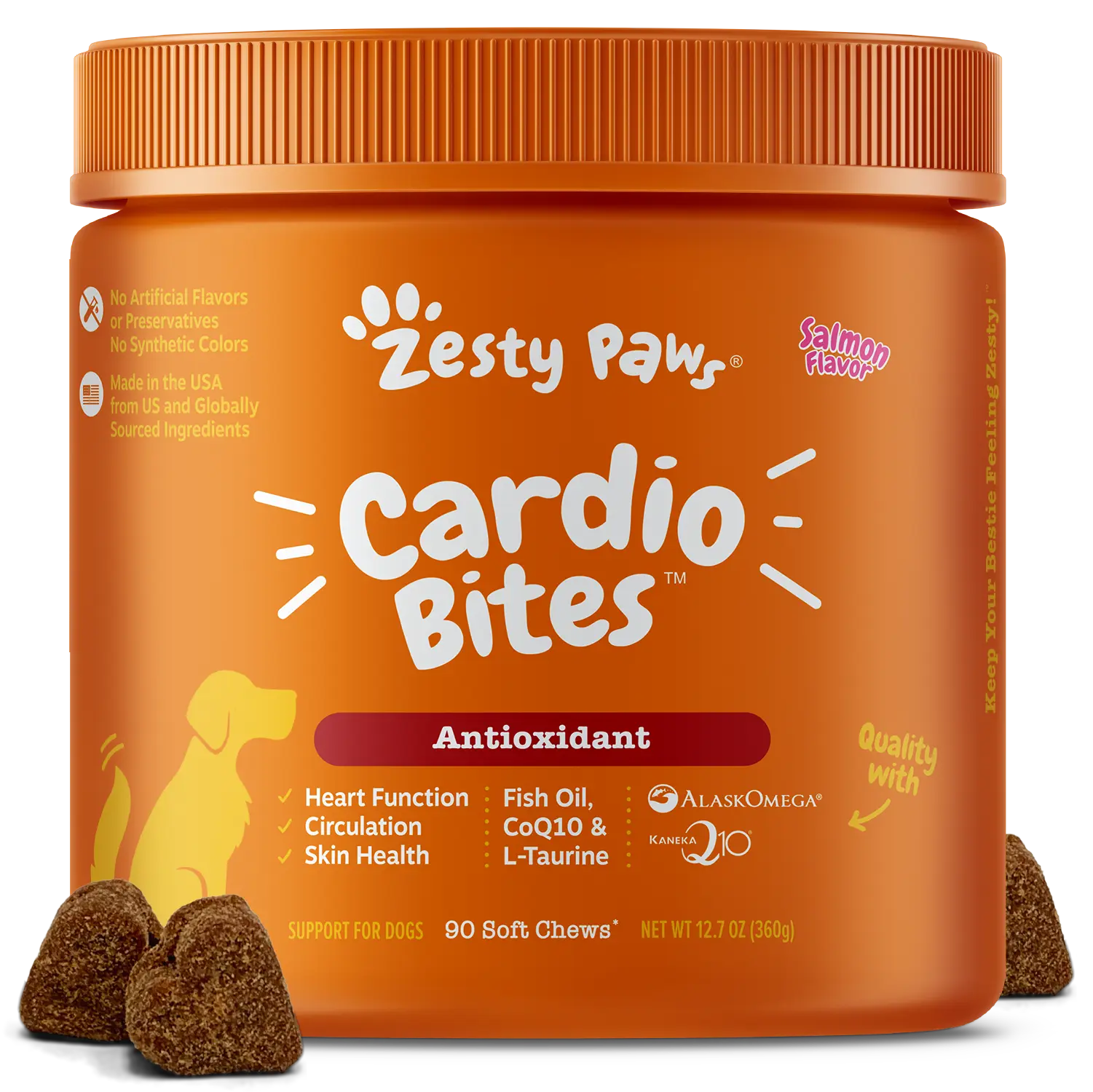 Cardio Bites are functional supplements that contain premium ingredients to support cardiovascular function and skin health to keep dogs happy in a heartbeat whether they’re small or large, and no matter what breed!