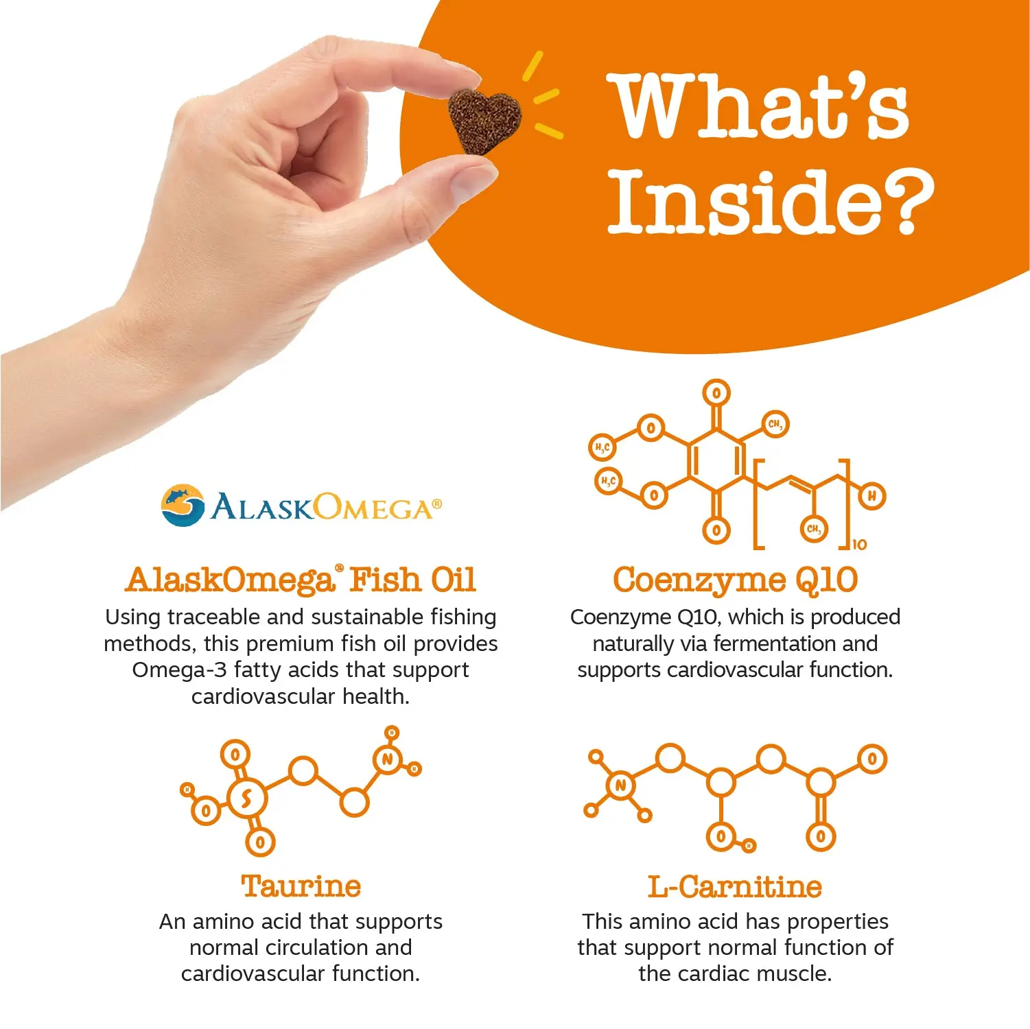 Each chew features AlaskOmega, a premium fish oil with Omega 3 fatty acids (EPA and DHA) for skin support along with Kaneka Q10, a clinically studied form of Coenzyme Q10 (or CoQ10), which is produced naturally via fermentation.