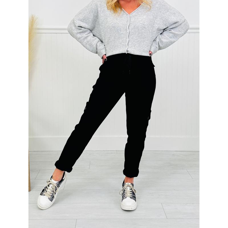 Be on the move in comfort and style in these new Judy Blue black jogger jeans that are sure to be a staple in your wardrobe this season. These feature a stretchy elastic waistband and an adjustable drawstring, giving you a comfortable and perfect fit every time you wear them. The trendy cargo pockets add both style and function, while the soft, stretchy fabric keeps you comfy from morning errands to evening plans.