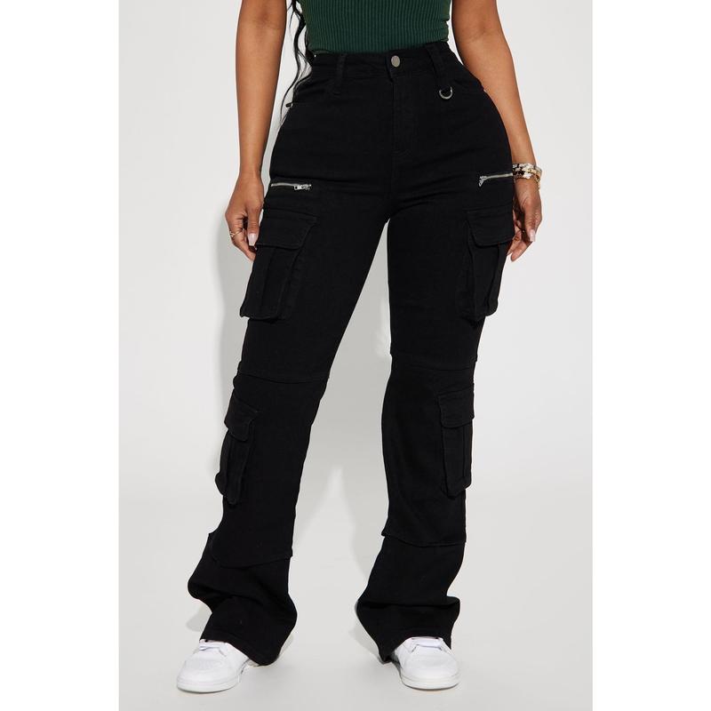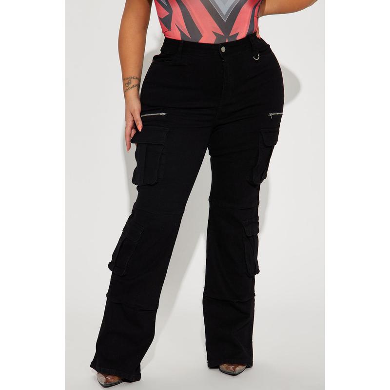 Fashion nova black cargo jeans with extreme stretch, I’m wearing a sz13 10/10 👌🏼