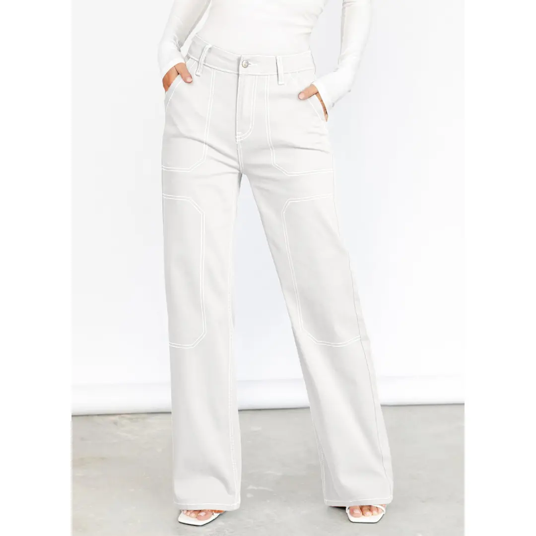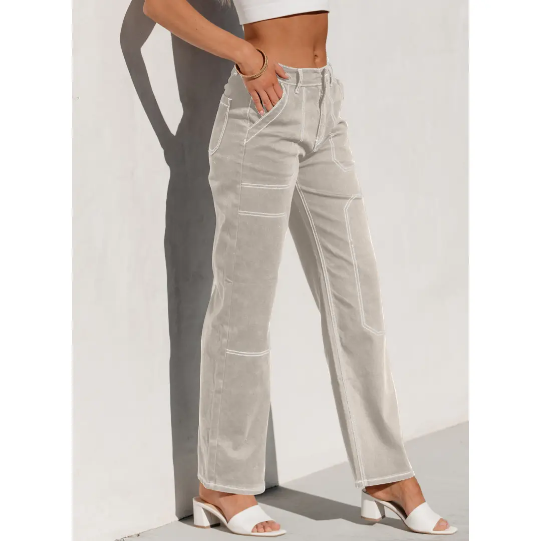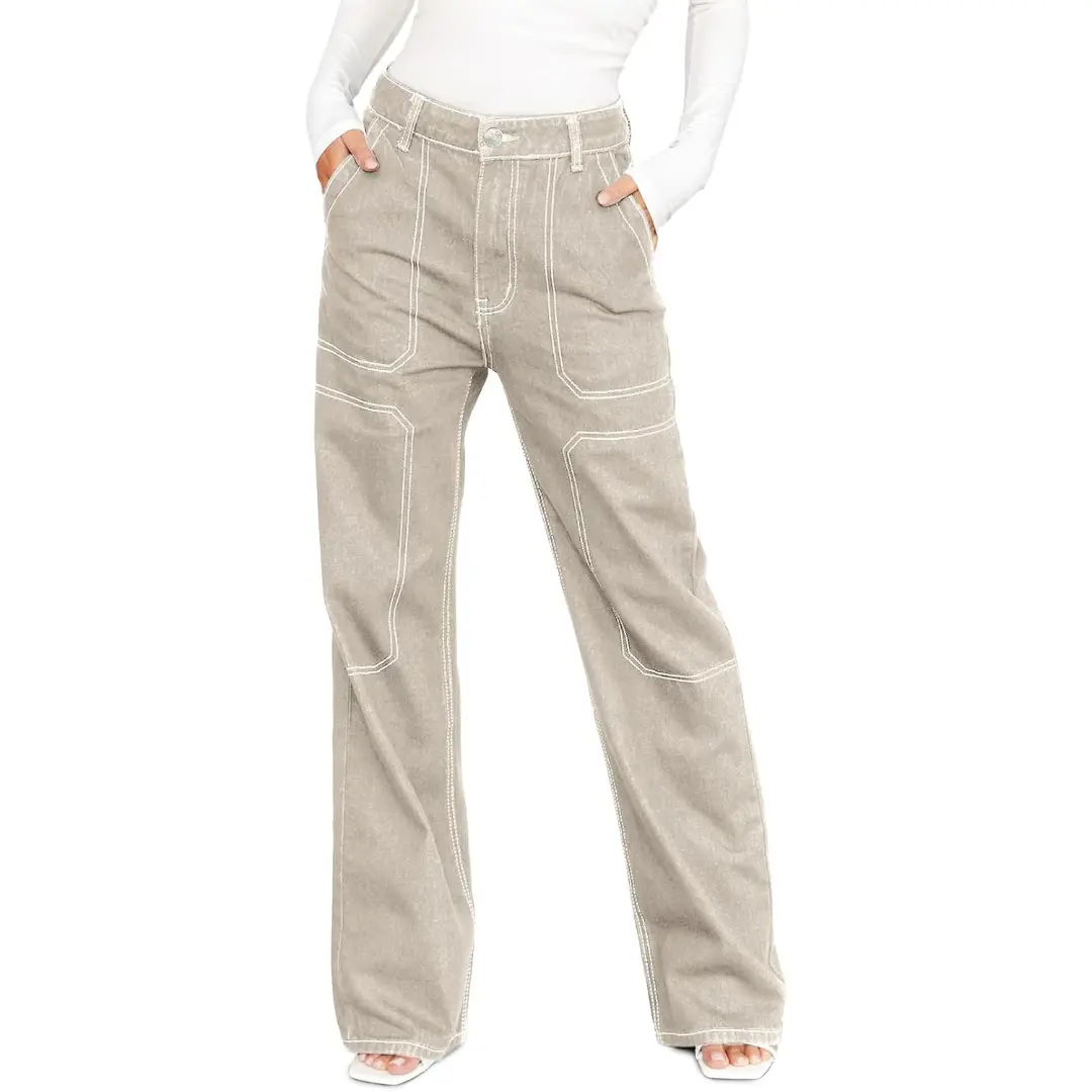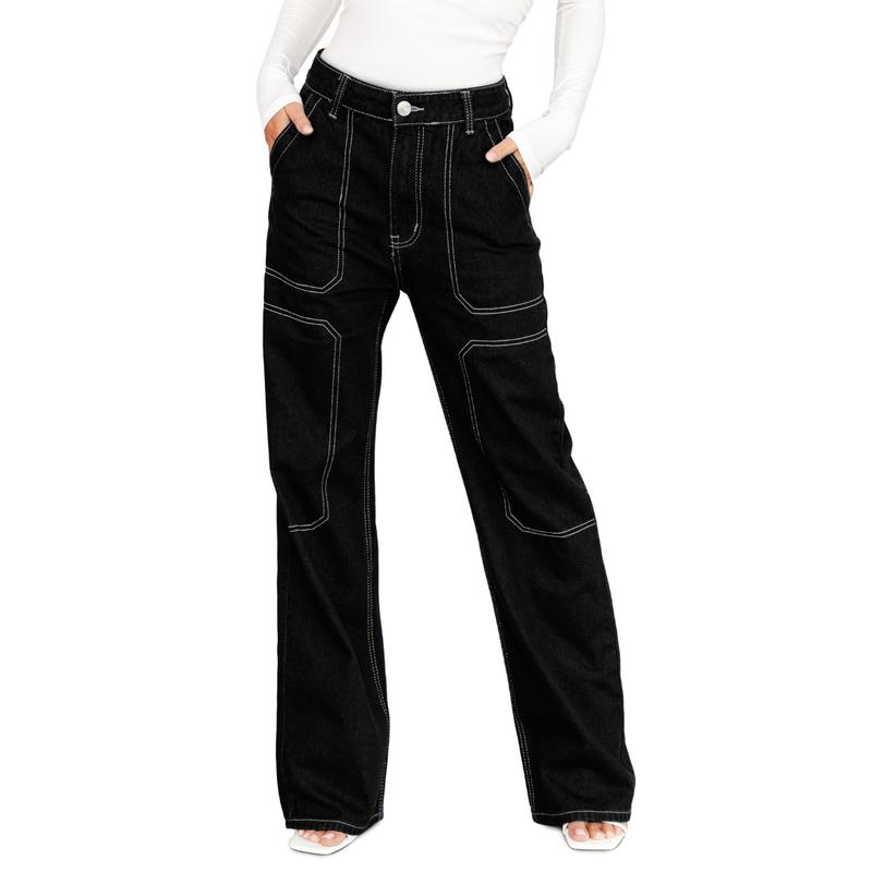 ·Features: Trendy cargo jean features wide leg, four pockets, contrast color stitches, mid rise, loose fit, button and zipper closure and full length. The unique visible seam line detail adds a touch of individuality and makes you stand out in a crowd