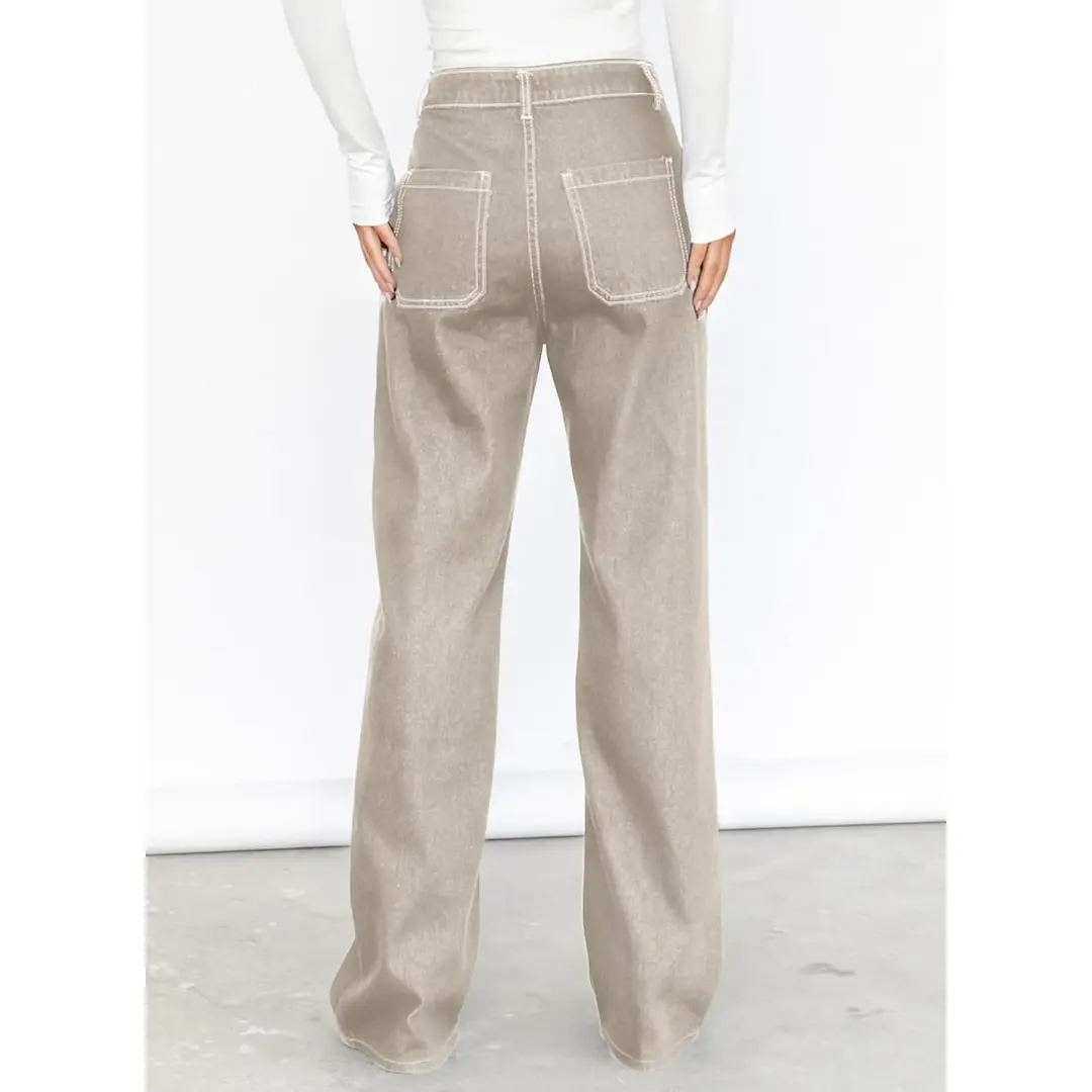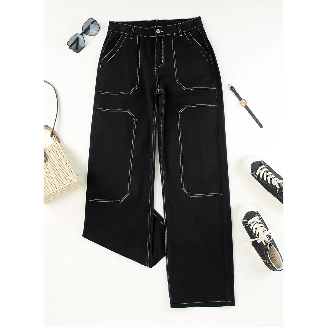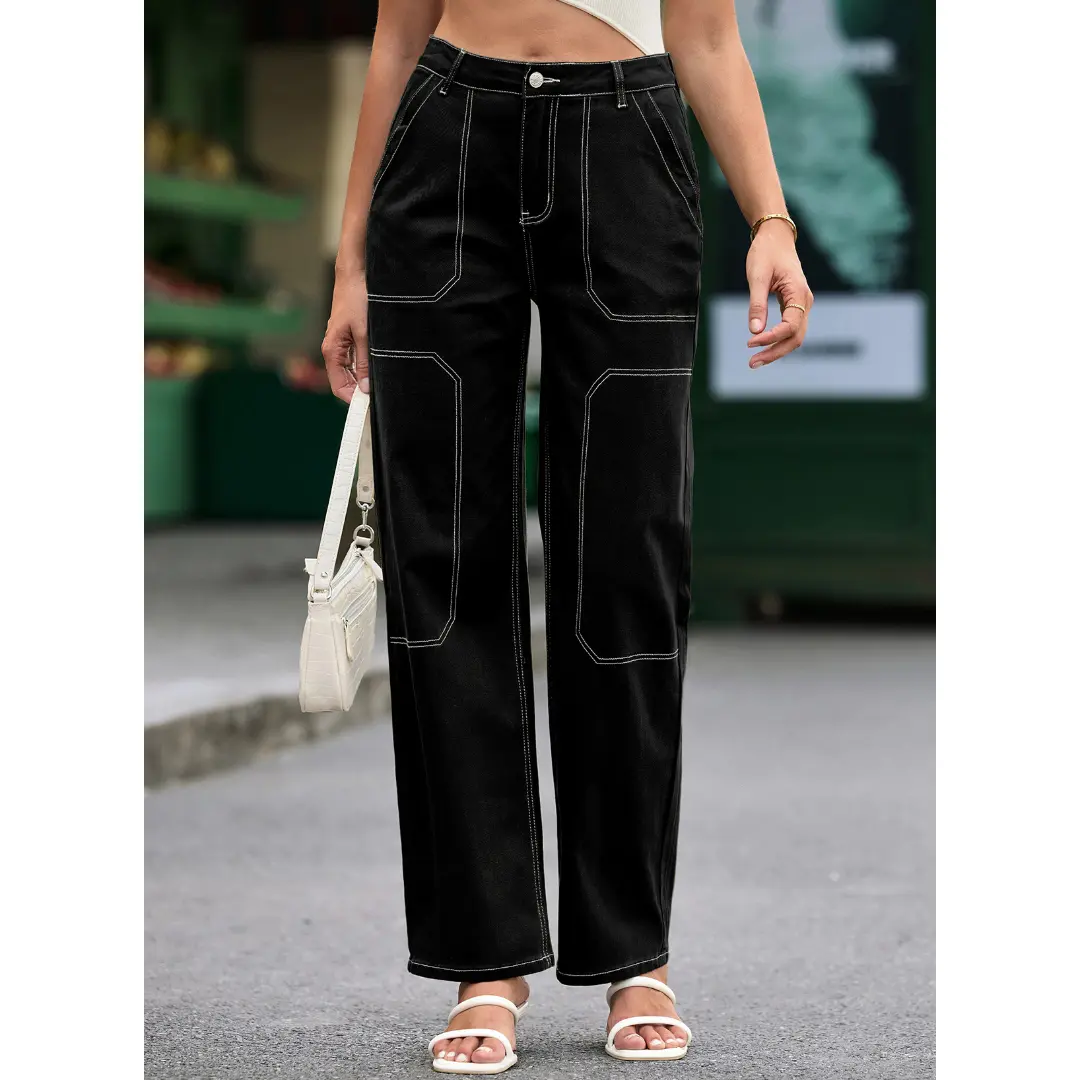 ·Features: Trendy cargo jean features wide leg, four pockets, contrast color stitches, mid rise, loose fit, button and zipper closure and full length. The unique visible seam line detail adds a touch of individuality and makes you stand out in a crowd