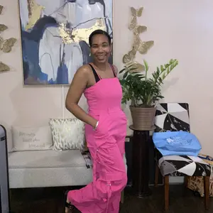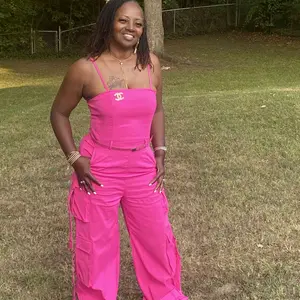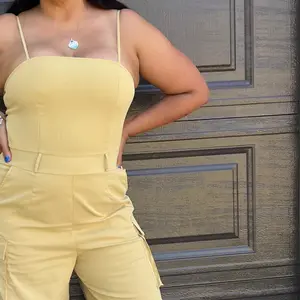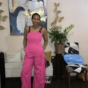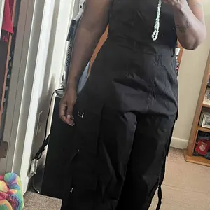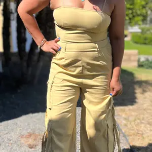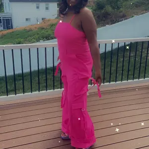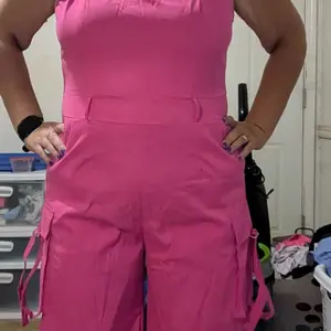 Love this Cargo pocket jumpsuit. I purchased an XL. I'm 5'3, 189lbs. 40D bra size. But it's so comfortable and cute. I wore with white bodysuit shirt underneath.