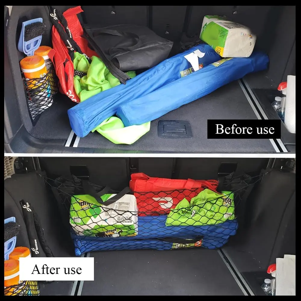 Function: The cargo net is mainly to fix and organize the items in the luggage, them from moving or shaking during the driving process, but also to help keep the trunk area clean and orderly, provide additional storage space, improve driving comfort and safety