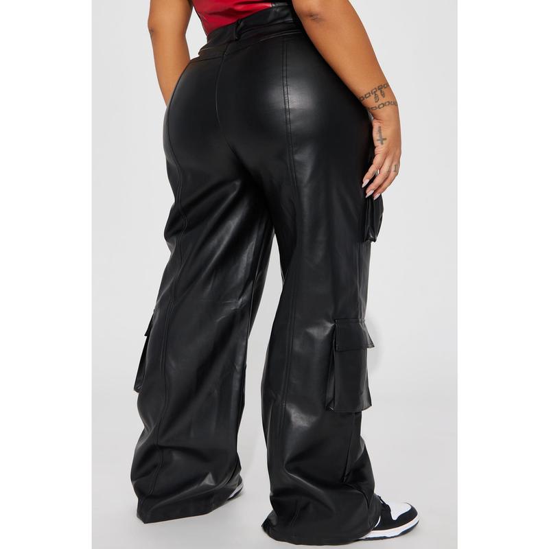 5. Drop A Pin Faux Leather Cargo Pant - Black